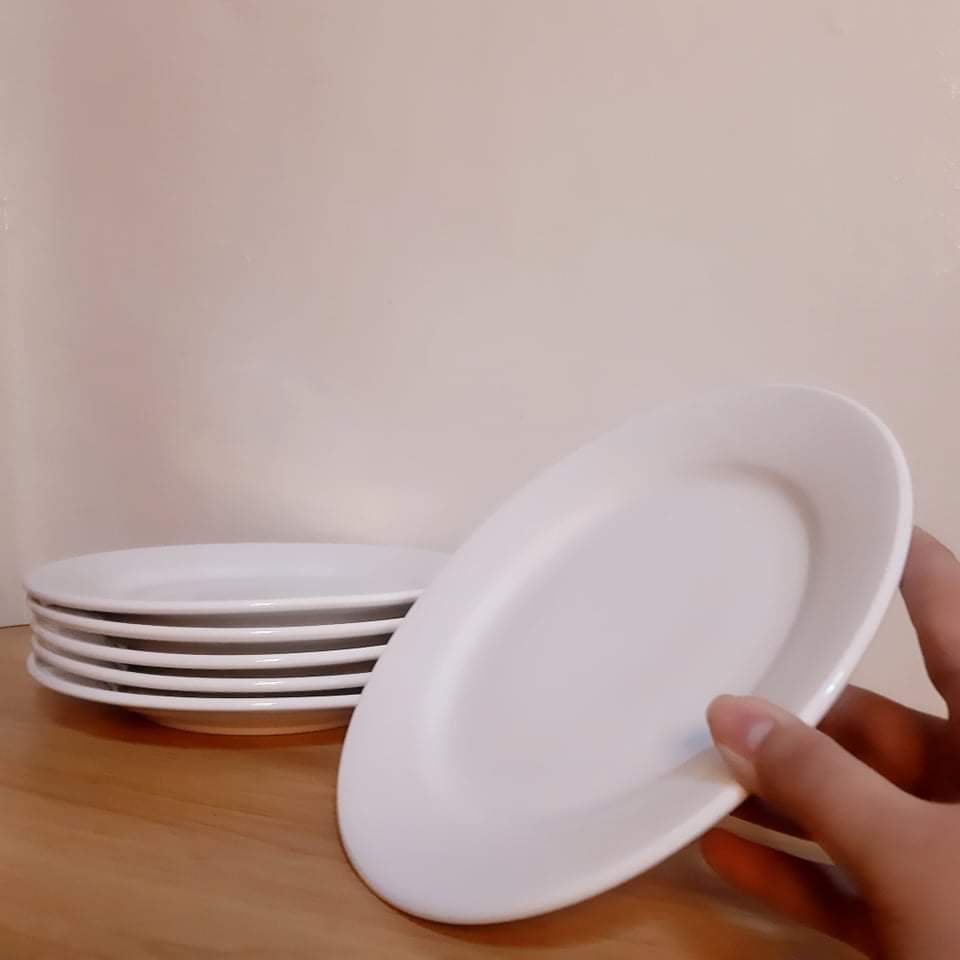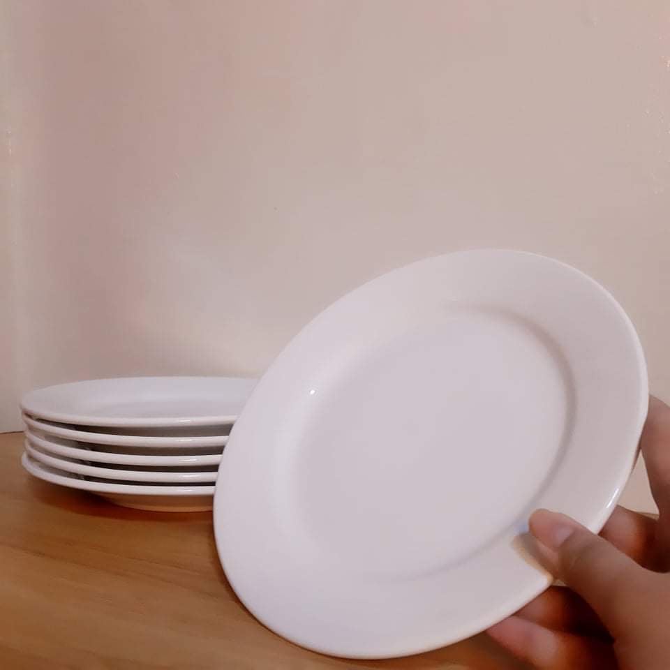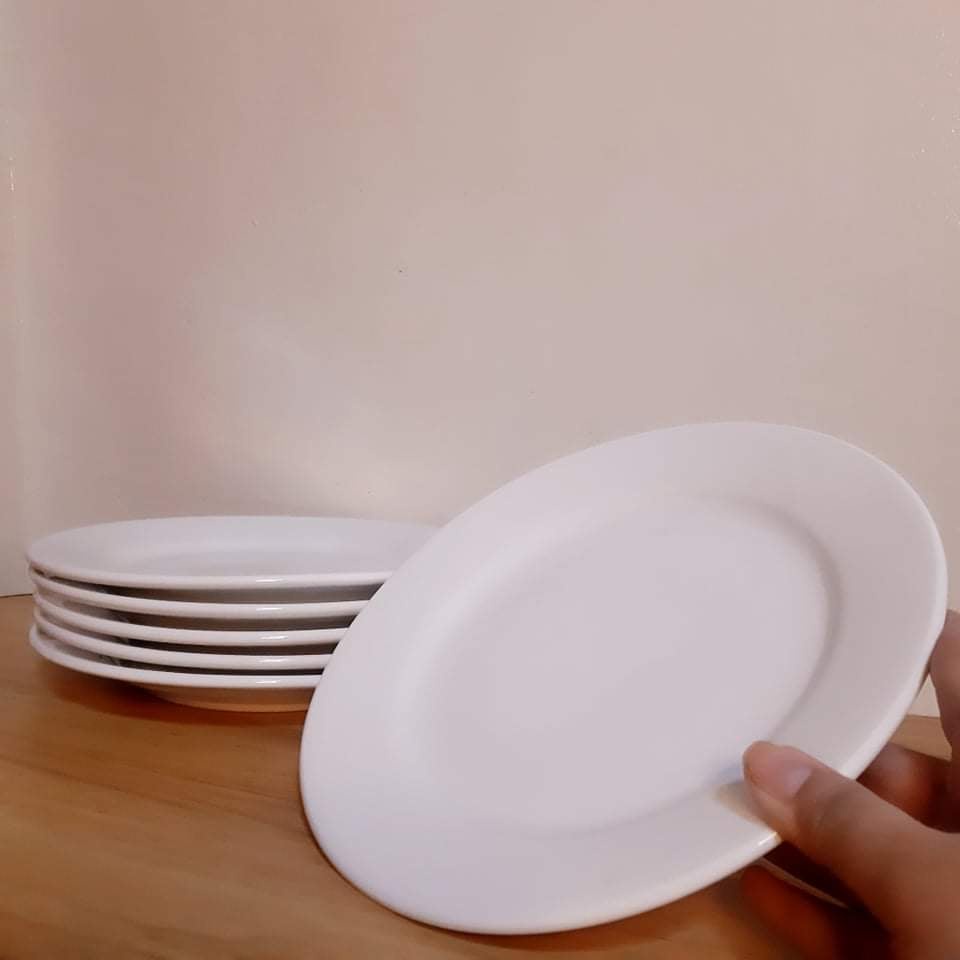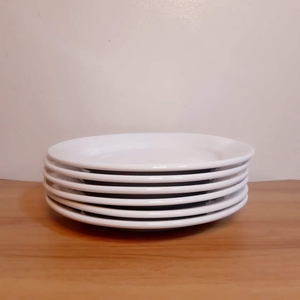 6 pcs 8 Inch Ceramic Dinner Plates, Rounded, White Salad Plates for Lunch, Pizza, Buffet, Steak