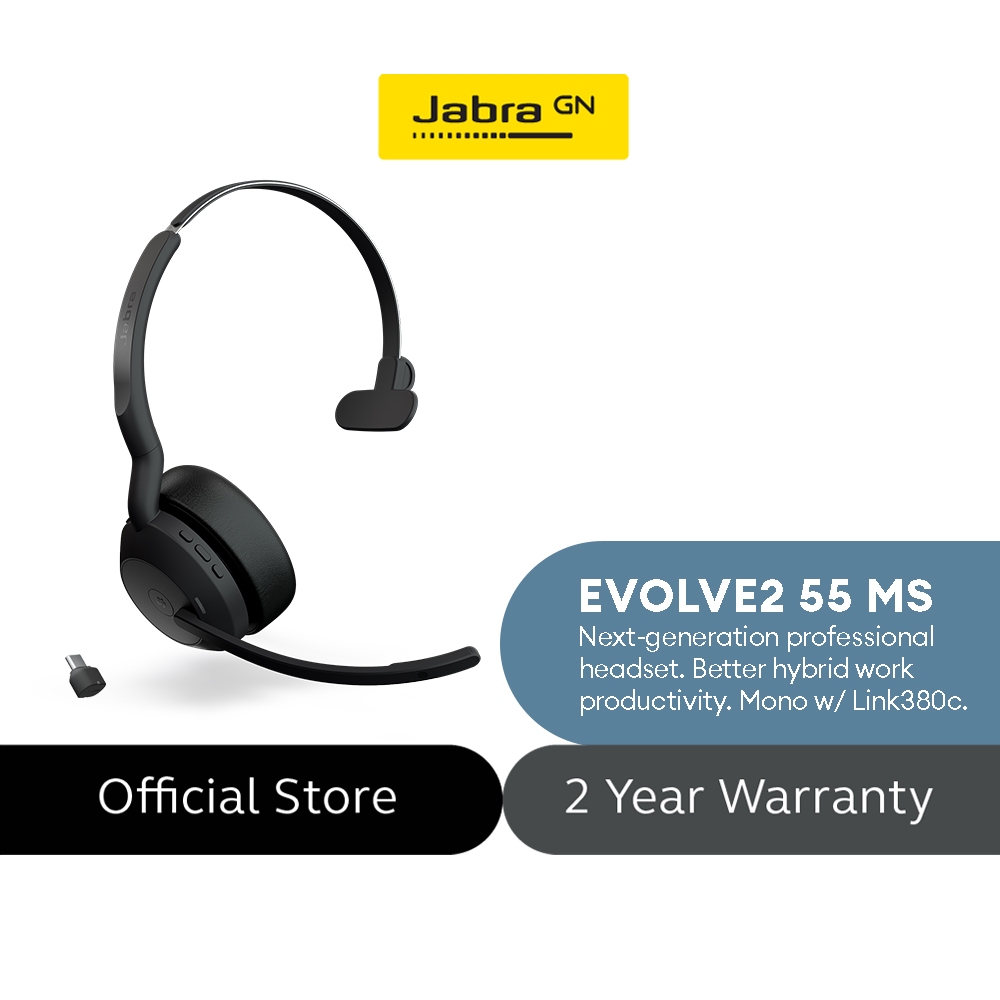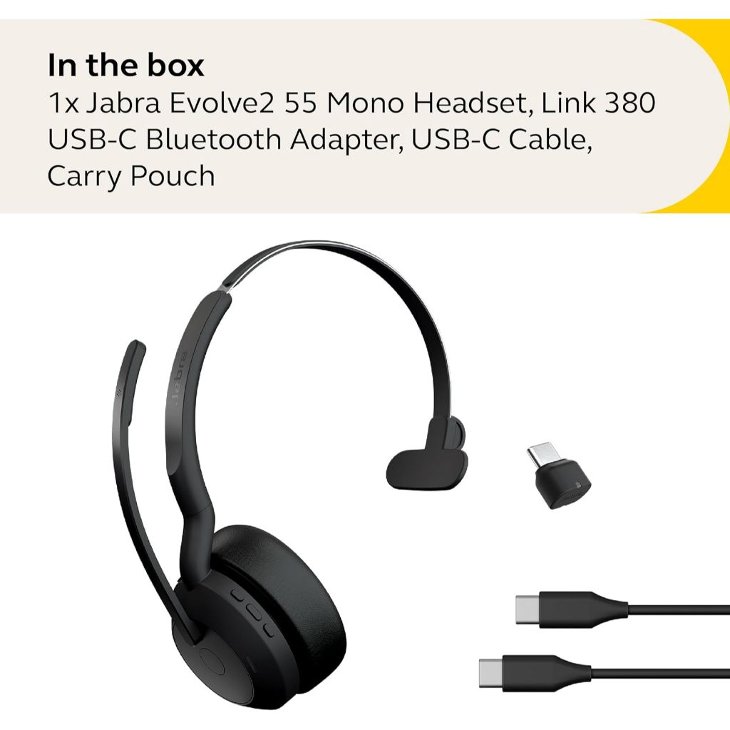 Jabra Evolve2 55 MS Mono with Link 380 USB-C Wireless Headset - Features AirComfort Technology