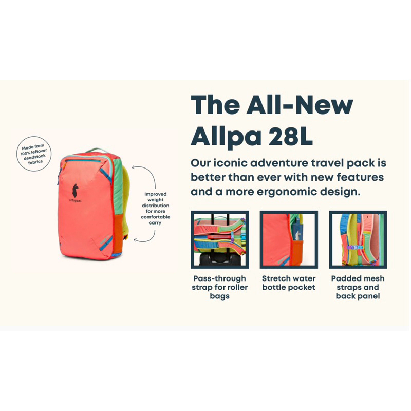 Cotopaxi Allpa 28L Travel Pack - Random Color One Of A Kind! No Bags Are The Same!