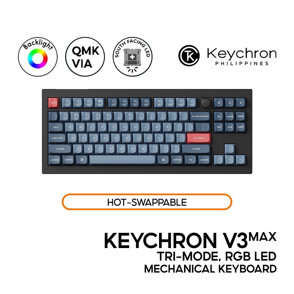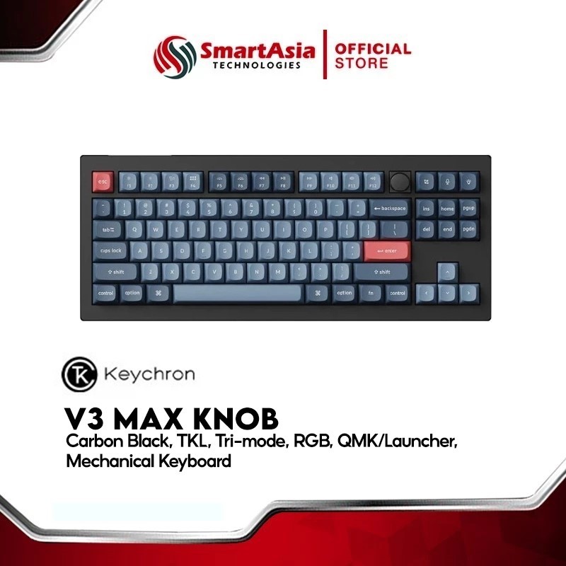 Keychron QMK V3 Max Knob Mechanical Keyboard, Carbon Black, TKL, Tri-mode, RGB, QMK/Launcher