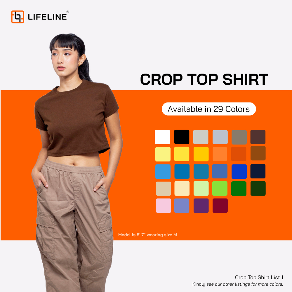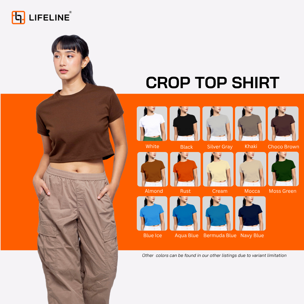 Lifeline Crop Top Shirt (White |Black |Khaki |ChocoBrown |Mocca |Almond |Rust |Gray |NavyBlue|Cream)