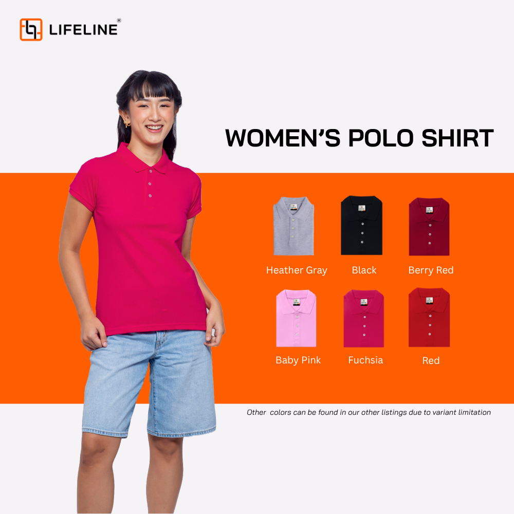 Lifeline Women's Polo Shirt (Heather Gray | Black | Berry Red | Baby Pink | Fuchsia | Red)