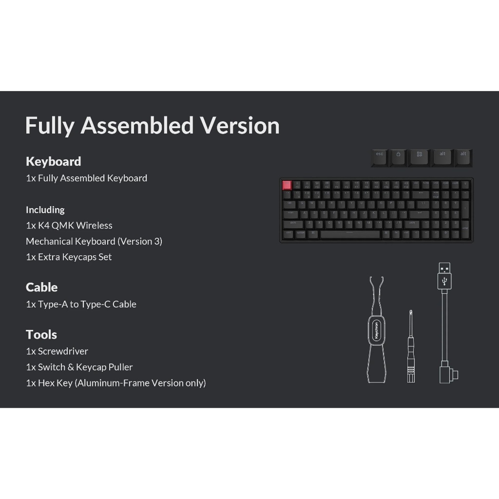 Keychron K4 QMK Mechanical Keyboard 96%, Wired/Bluetooth, RGB LED, Aluminum, Hotswap (Ver. 3)