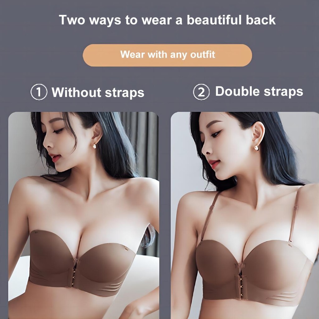 CAPIN solid color front slit wireless seamless push up ba