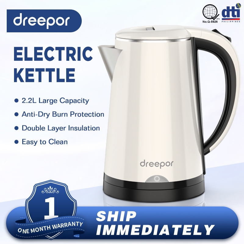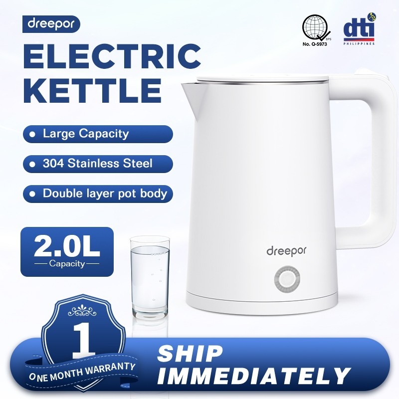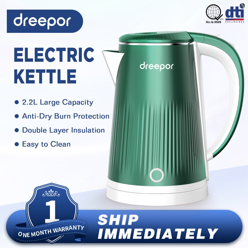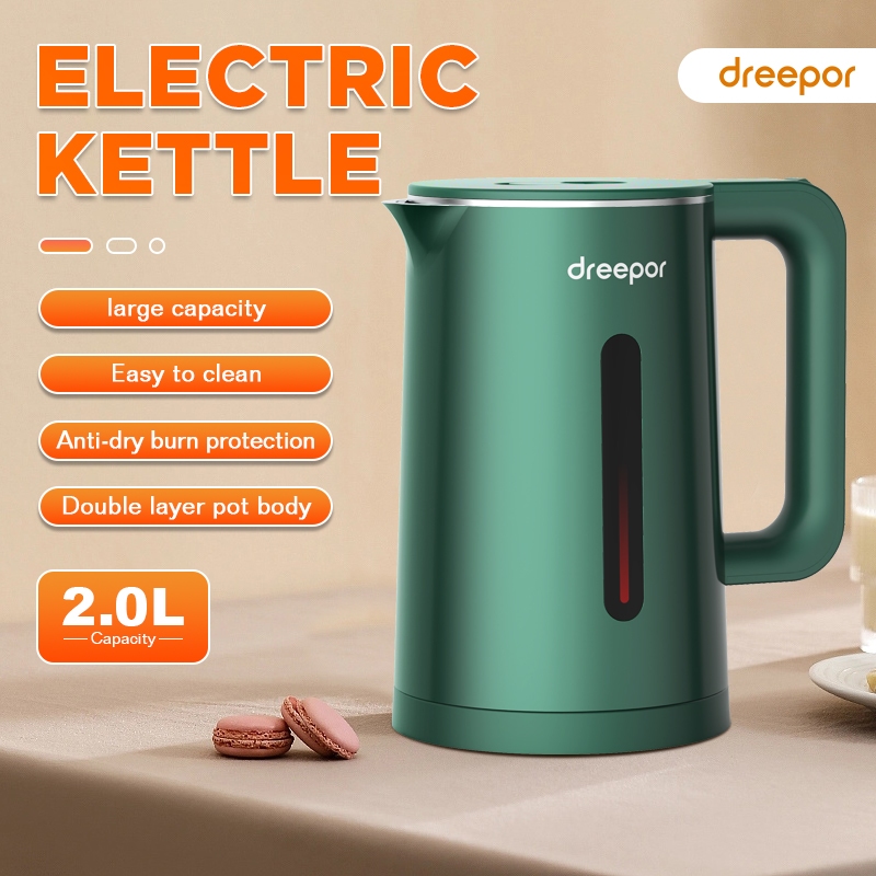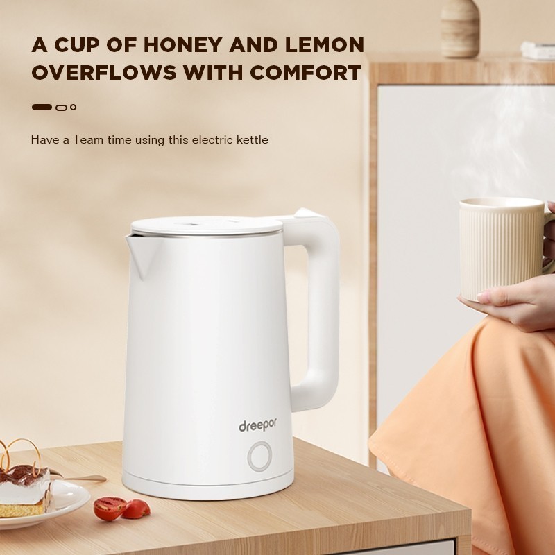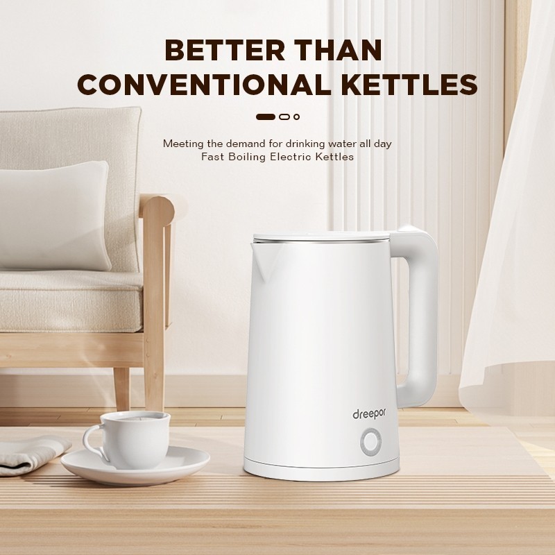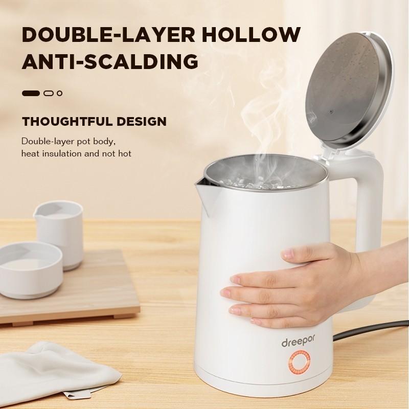 Dreepor 2-2.3L Electric Kettle Stainless Kettle Double Layer anti-scalding Easy Use Fast Boiling