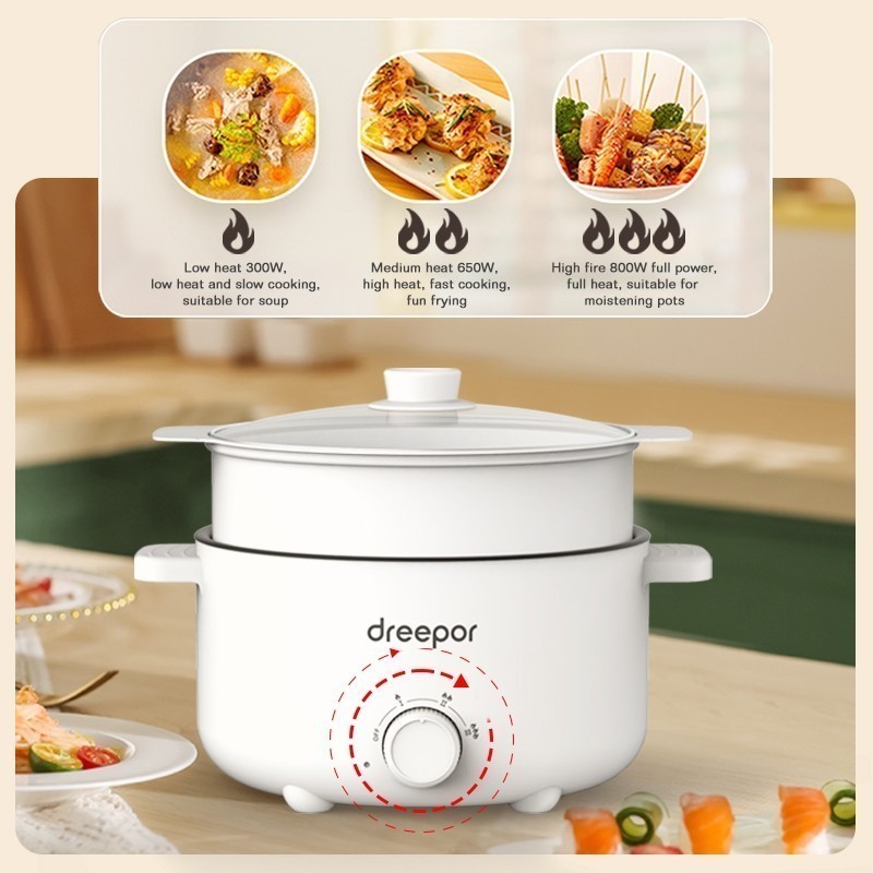 Dreepor Multifunctional Electric Cooker With Steamer Rice Cooker Hot Pot Cooker Non Stick Pan 3L-4L