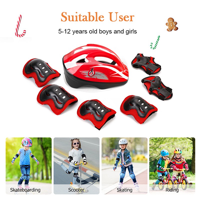 7Pcs Skateboard Helmet Kids Helmet Knee Elbow Pad Sets for Cycling/Skateboard/Bicycle Tools