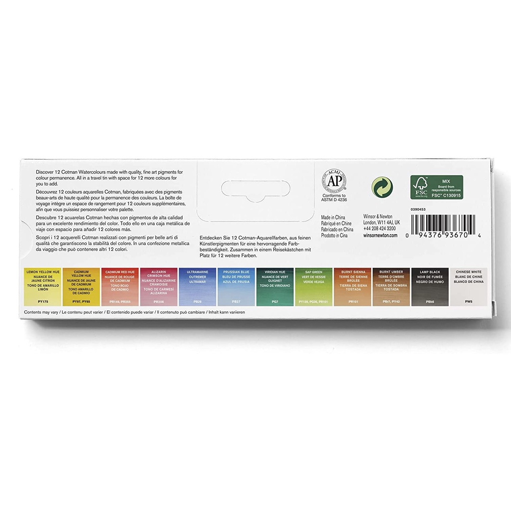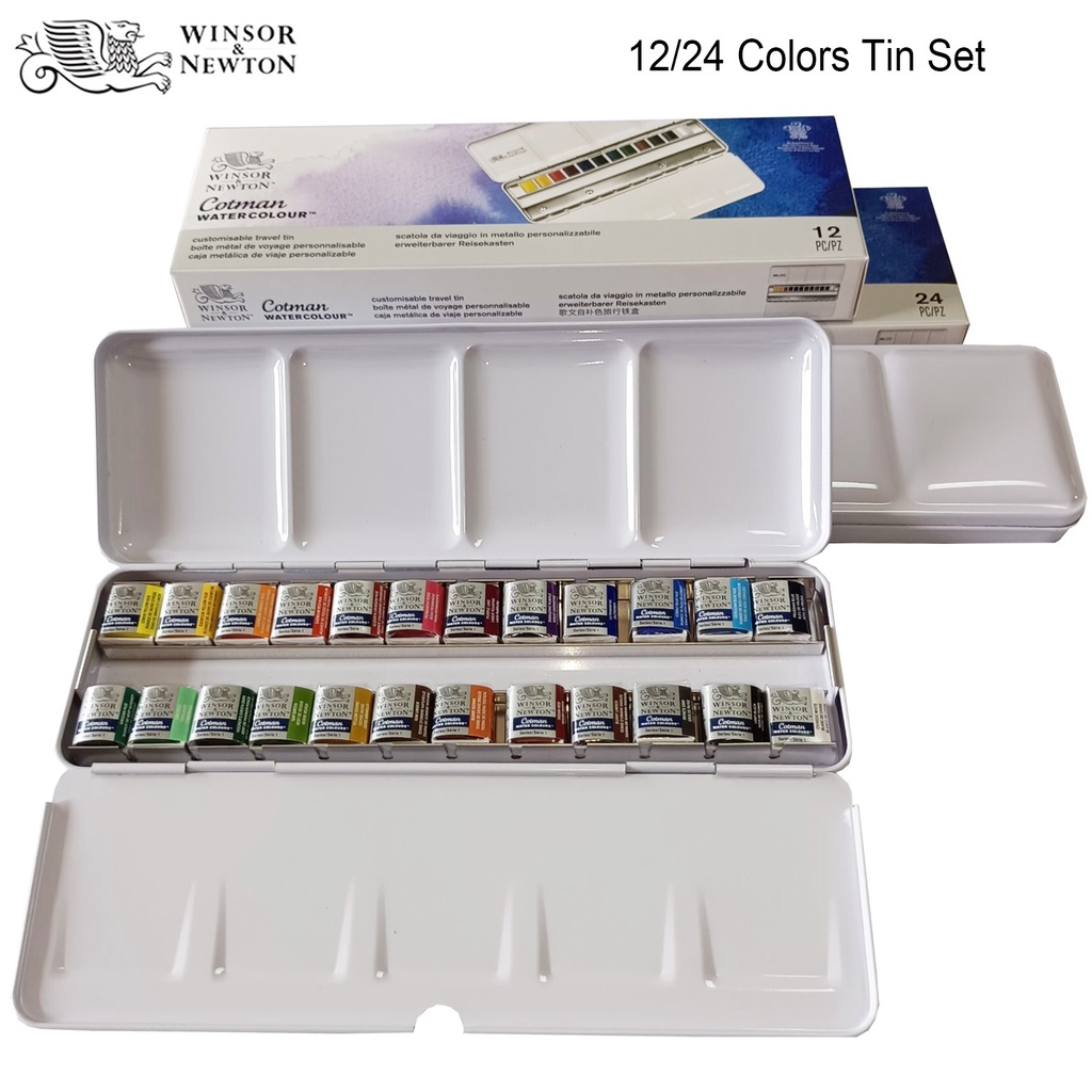 Winsor & Newton Cotman Watercolour Customisable/complete travel tin 12/24 colors set fine art pigments paint water color