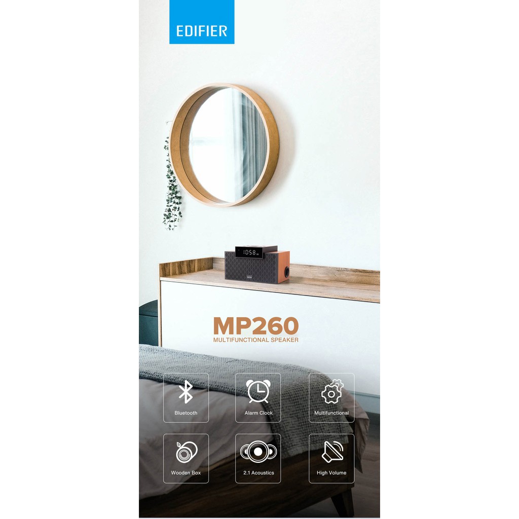 Funhouse | Edifier MP260 Wireless Bluetooth V5.0 Subwoofer Stereo Wooden Portable Speaker