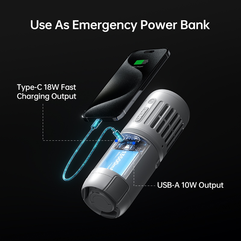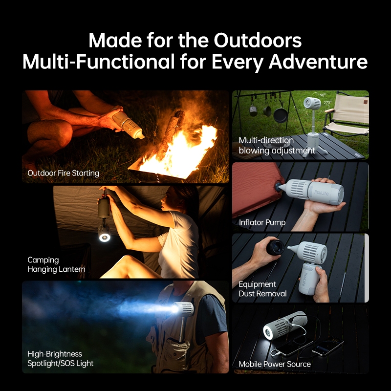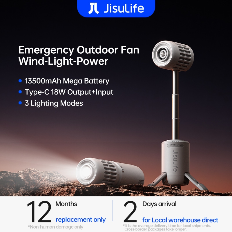 JISULIFE Outdoor Fan Ultra1 13500mAh Rechargeable All-in-1 Emergency Light Turbo Jet Fan with Power Bank Handheld Ceiling Desk Fans for Camping Power outage disaster