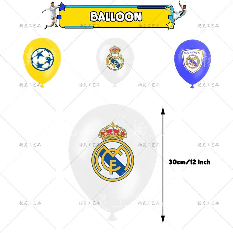 Real Madrid Football Party Decorations Birthday Themed Fan Boys Football Sports Banners Cakes Topper Balloons Scene Layout Gifts