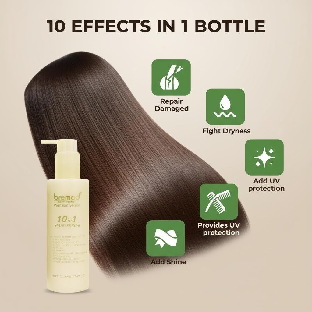 Bremod 10in1 Hair Serum 210ml BR-H052 BUY1TAKE1 Anti-Frizz Smooth Shiny Moisturizing Hair Treatment