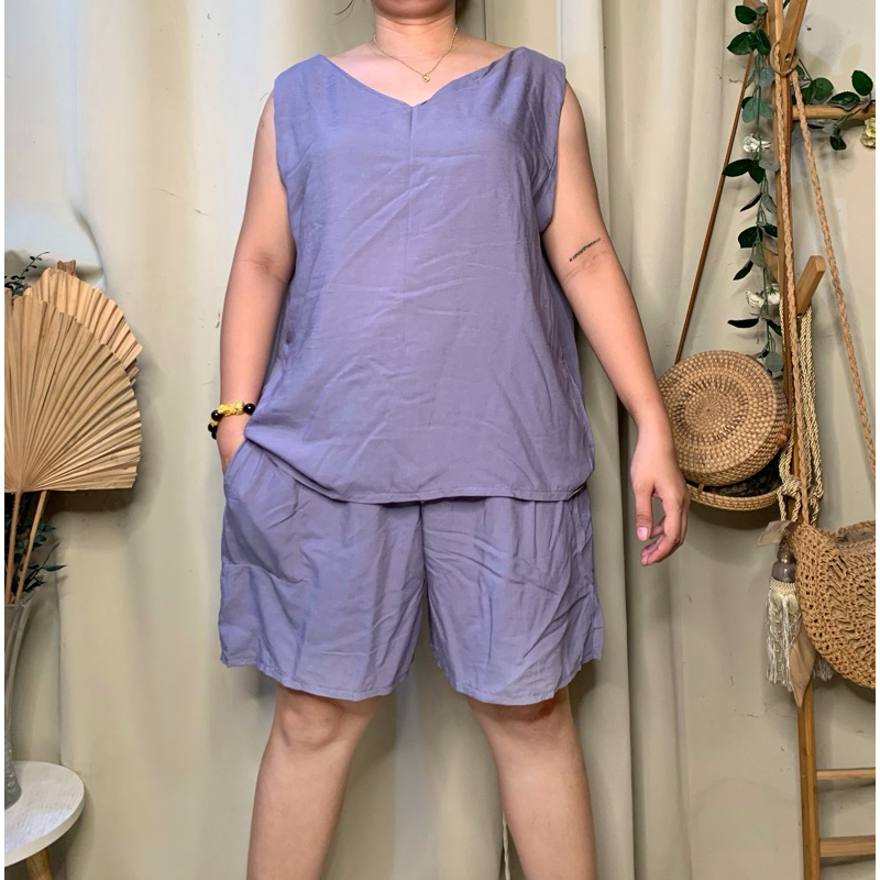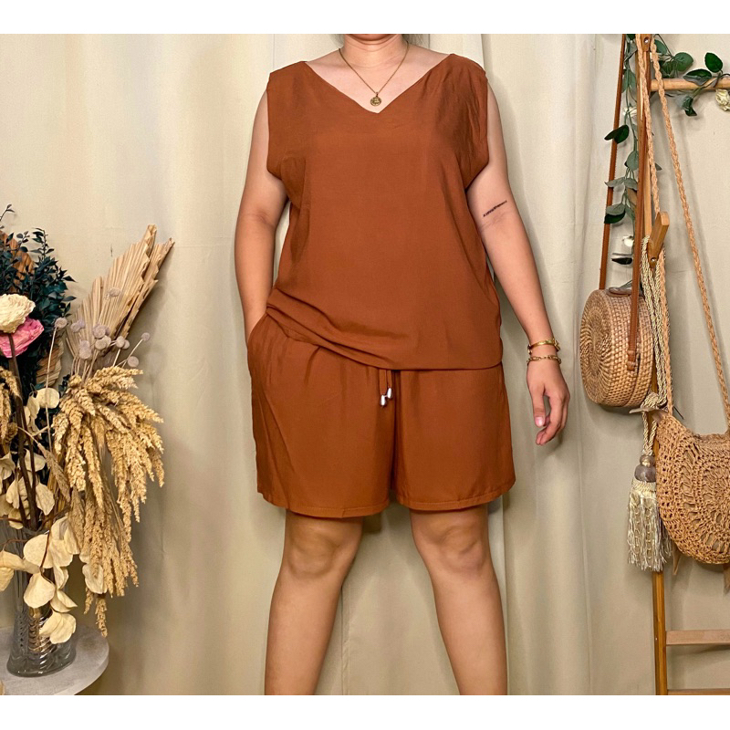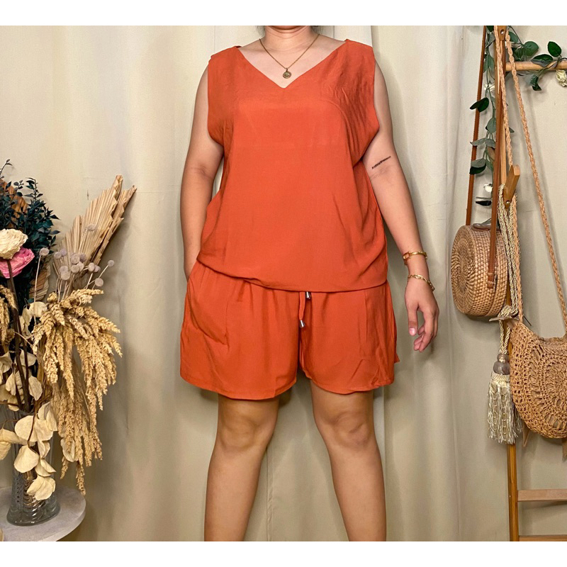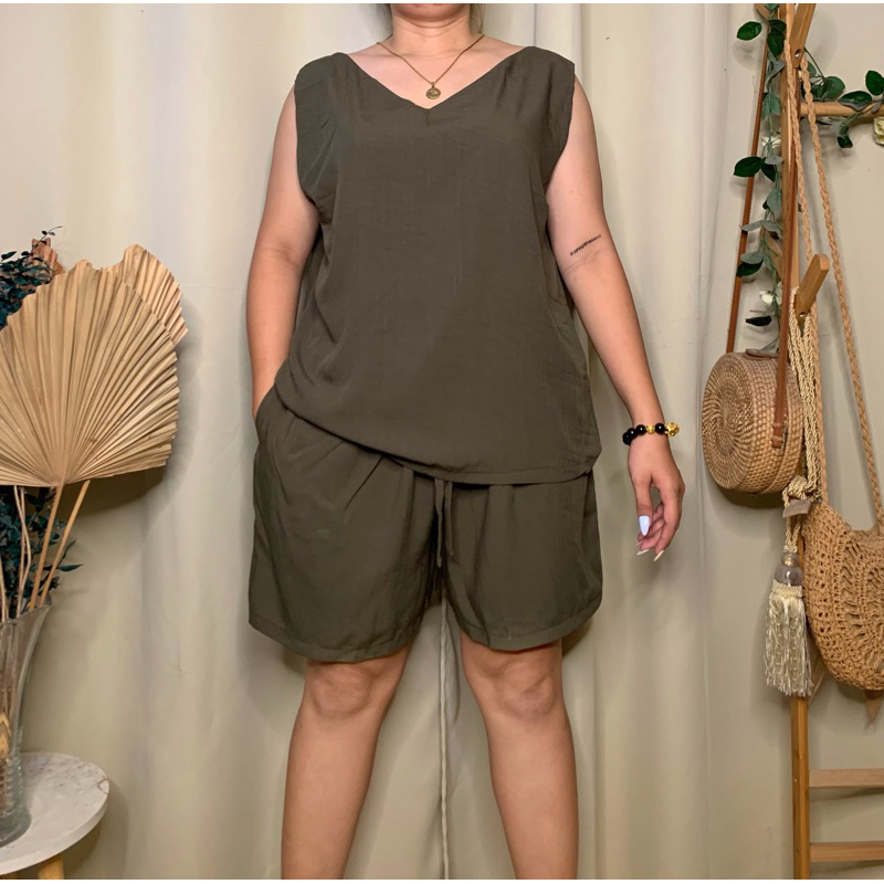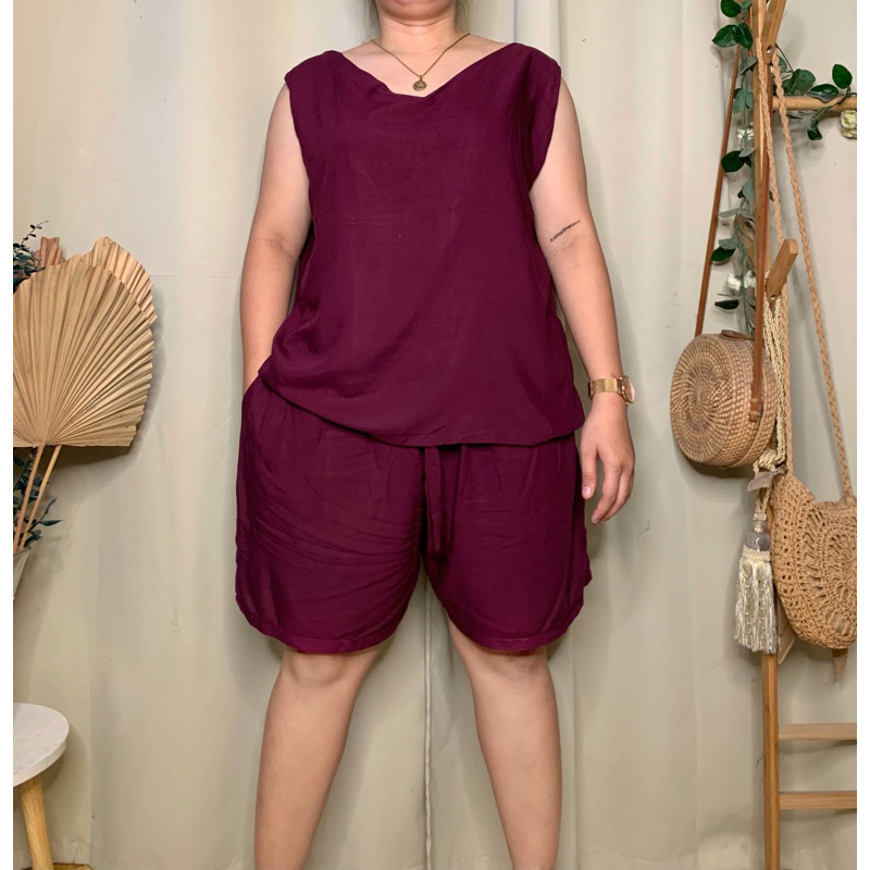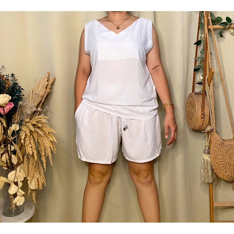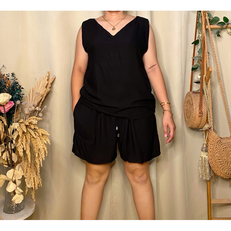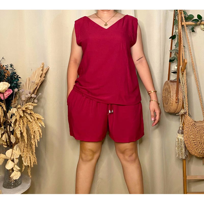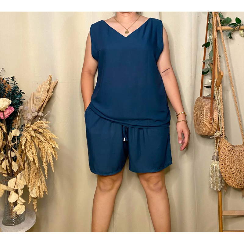 L TO 2XL BELERICK PLUS SIZE CHALLIS TERNO VNECK SHORT