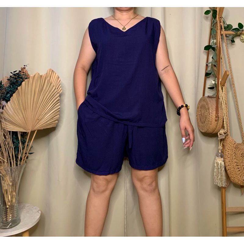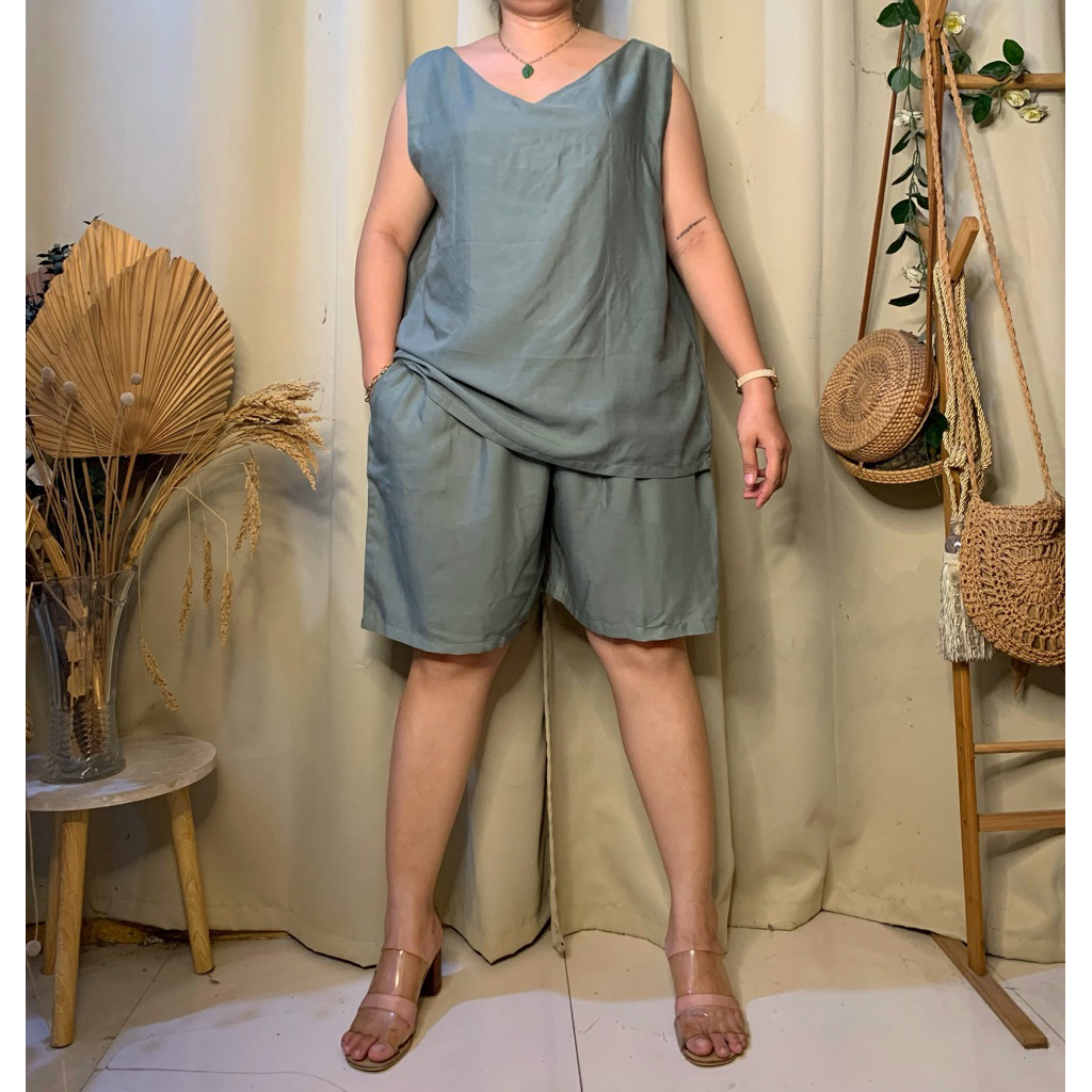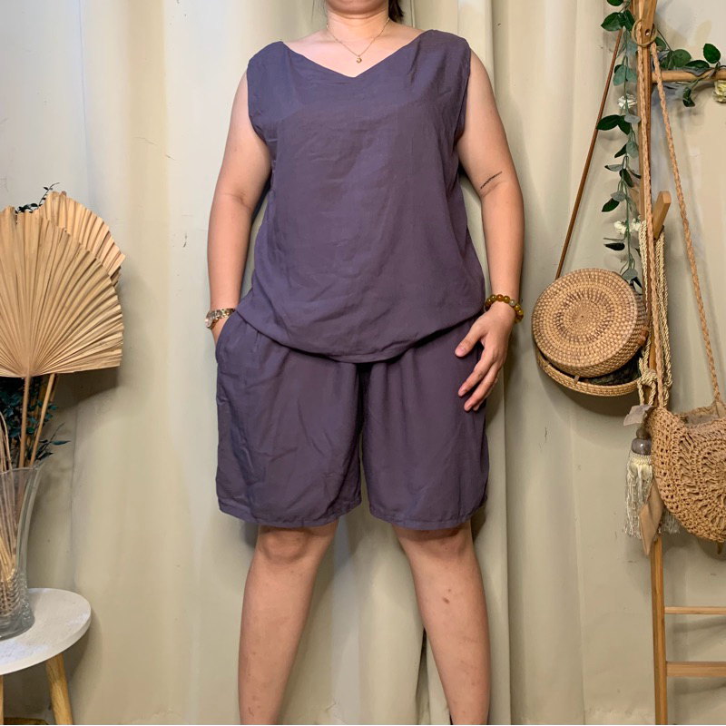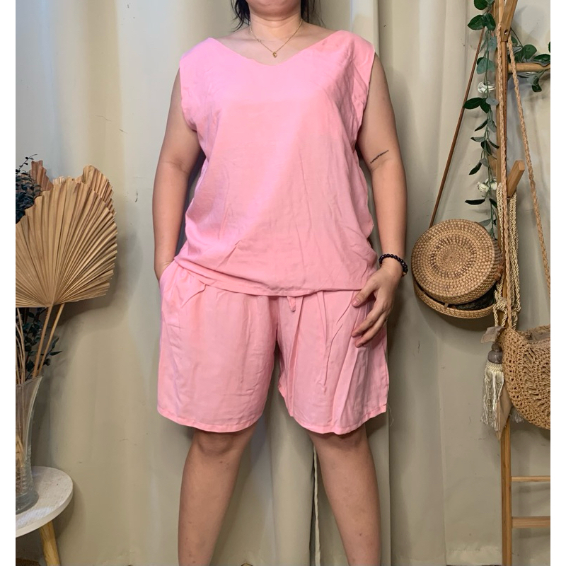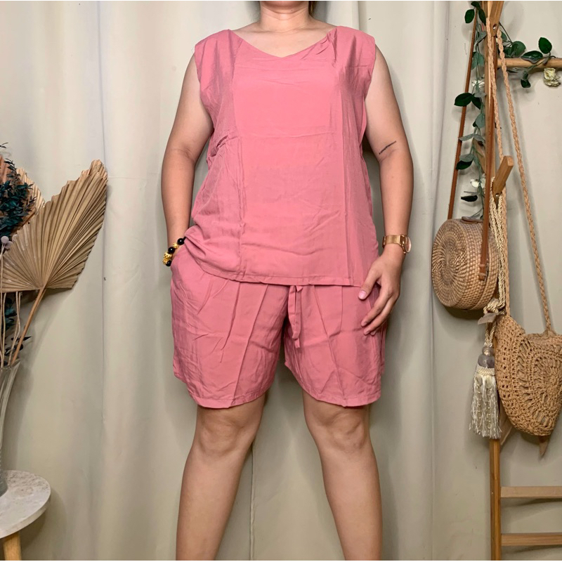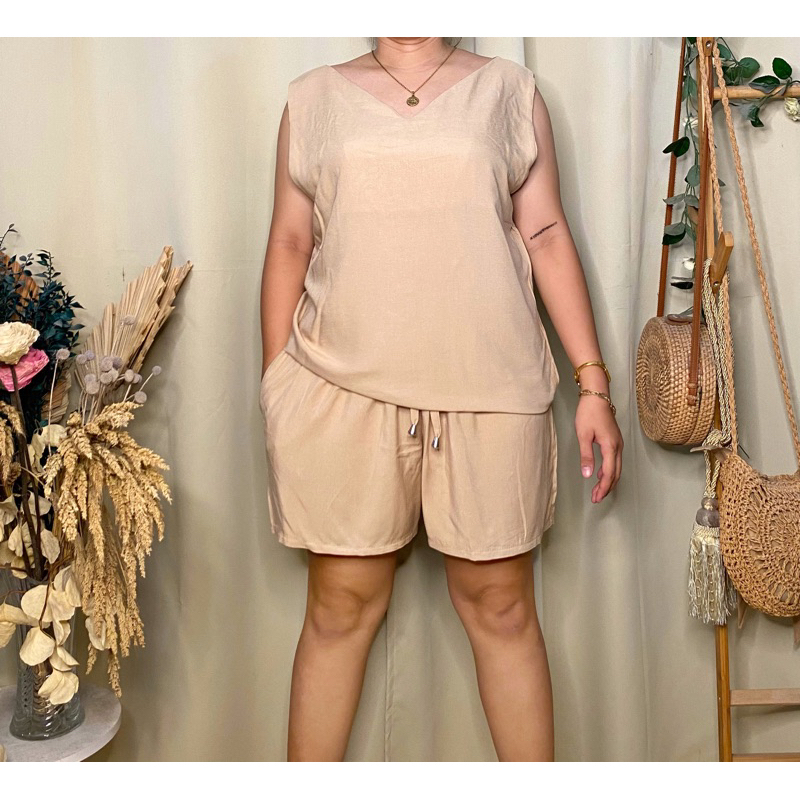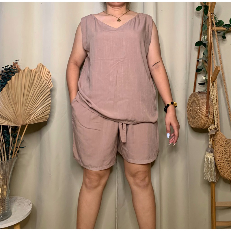 L TO 2XL BELERICK PLUS SIZE CHALLIS TERNO VNECK SHORT