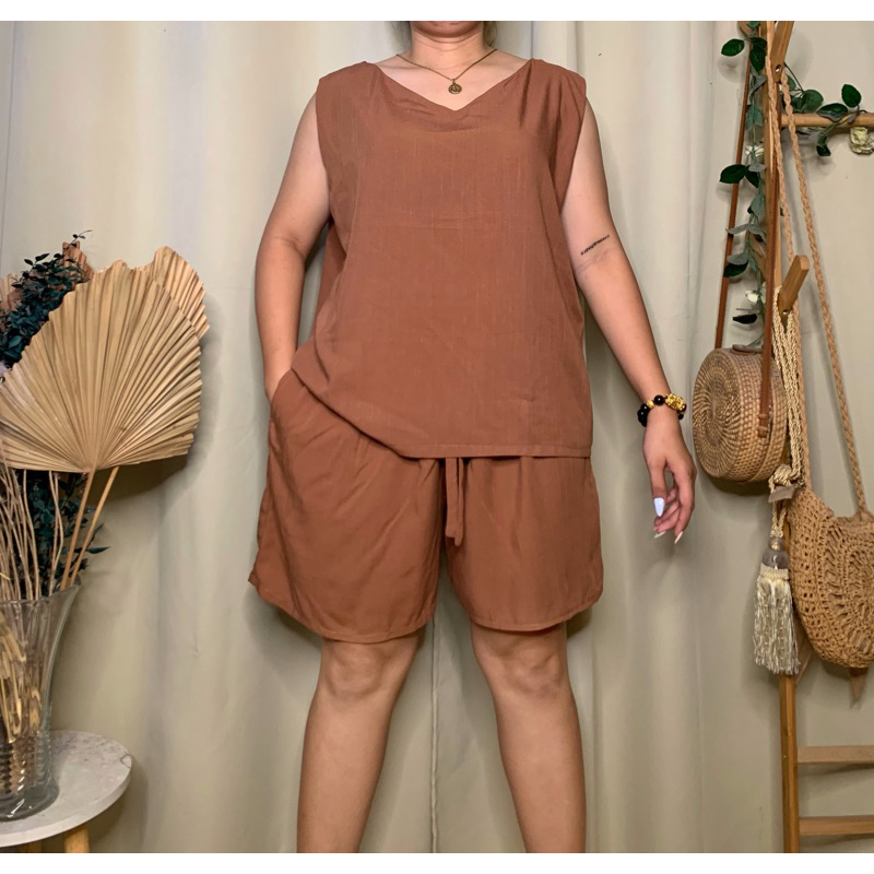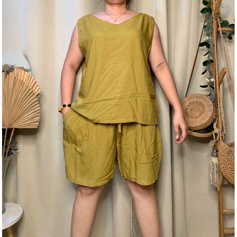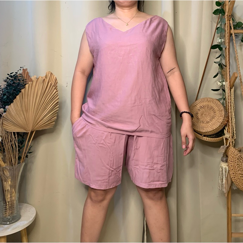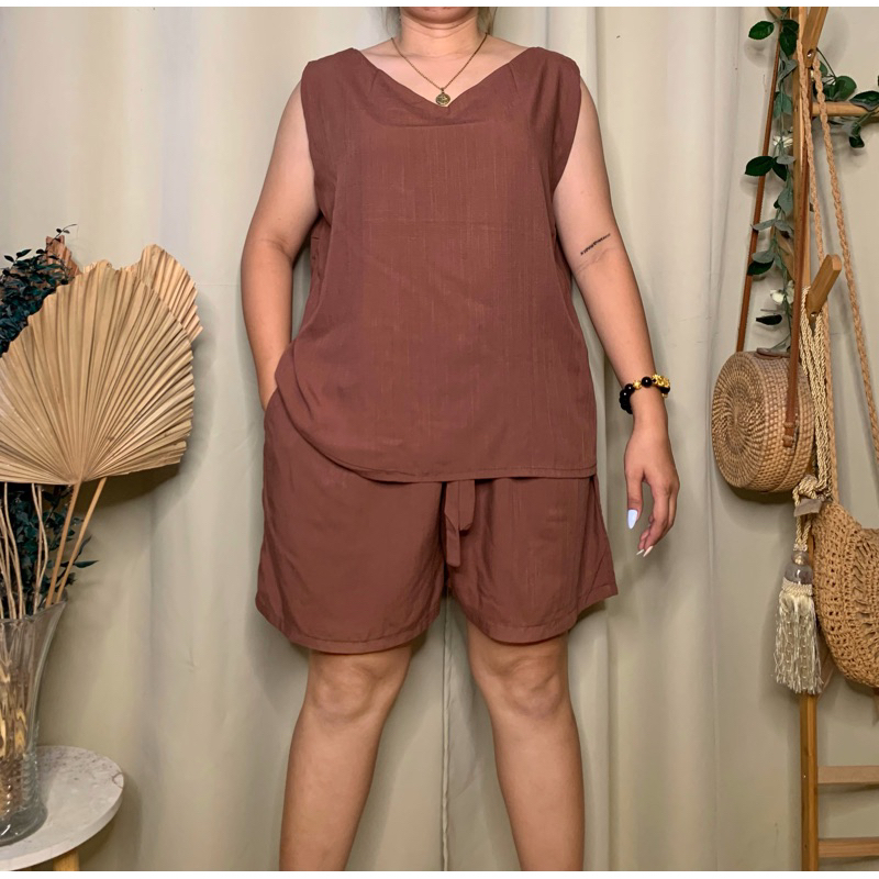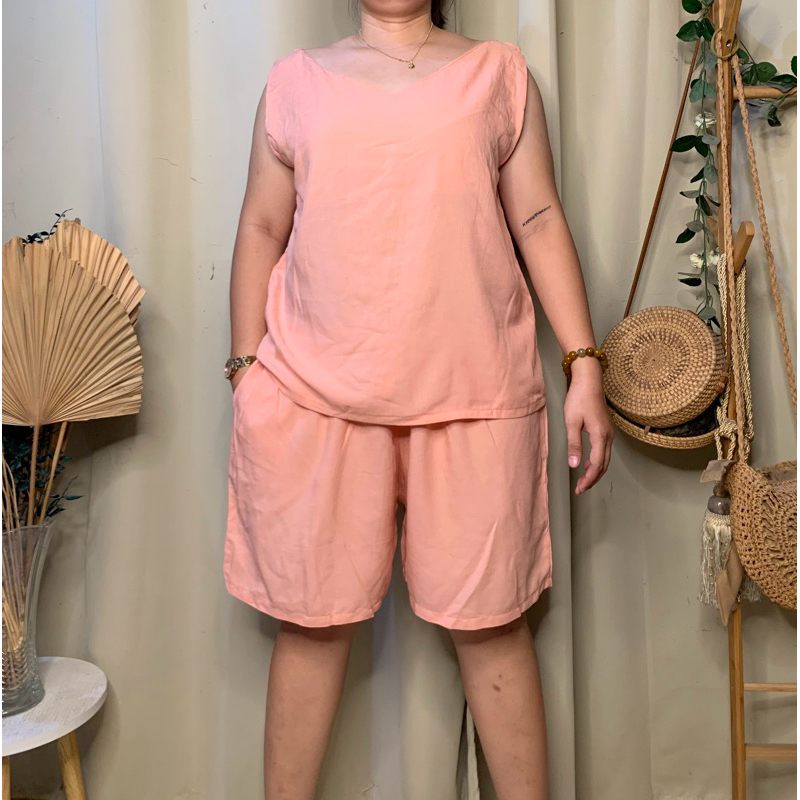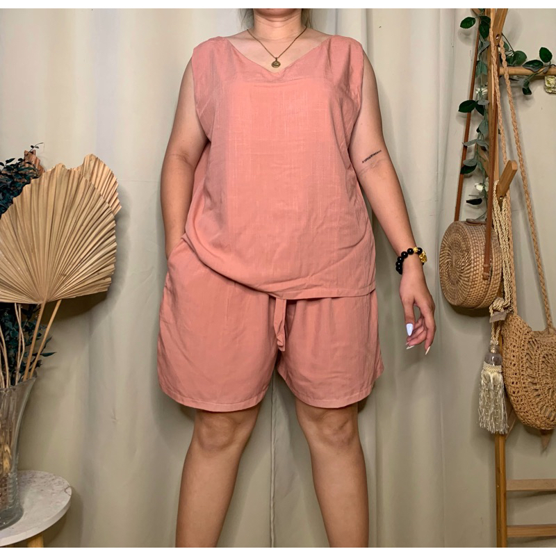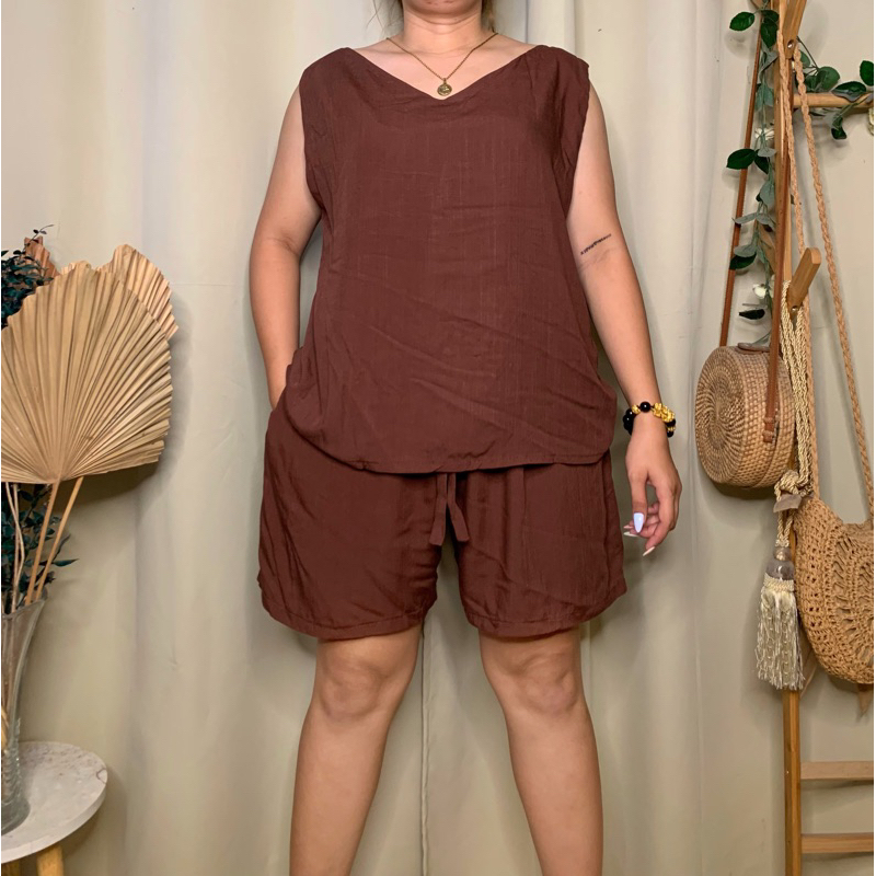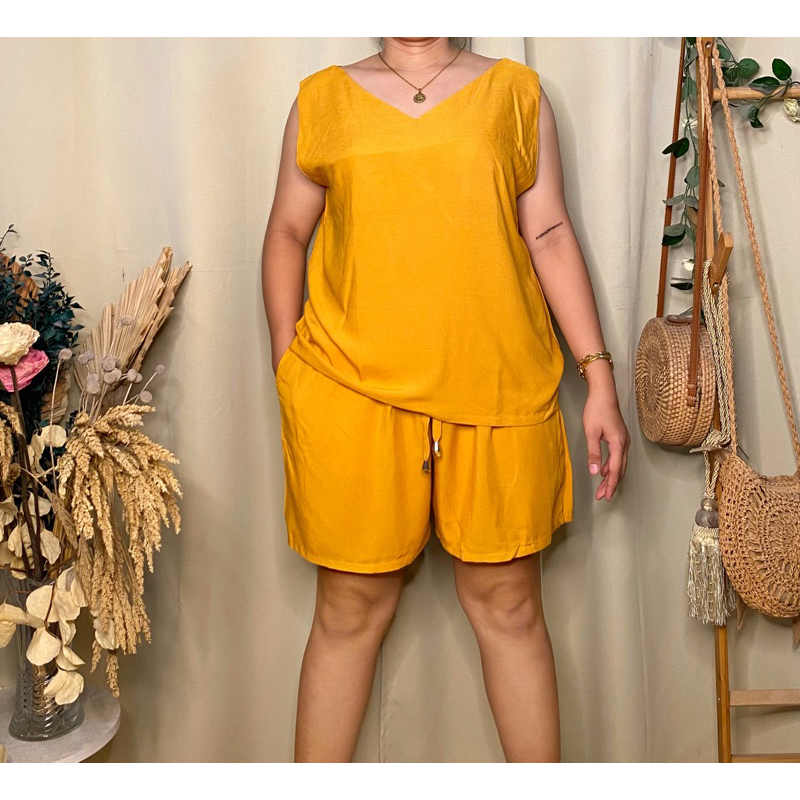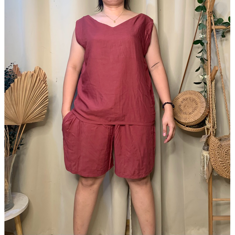 L TO 2XL BELERICK PLUS SIZE CHALLIS TERNO VNECK SHORT