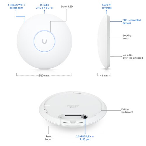 Ubiquiti U7-Pro UniFi 7 Pro 802.11be 2.4 / 5 / 6 GHz 2x2 MIMO WiFi 7 Access Point (U7-Pro)