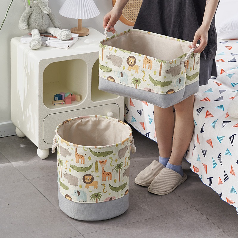 Canvas Laundry Basket Kids Cute Cartoon Foldabe Storage Basket Toys Clothes Baby Nursery Organizer