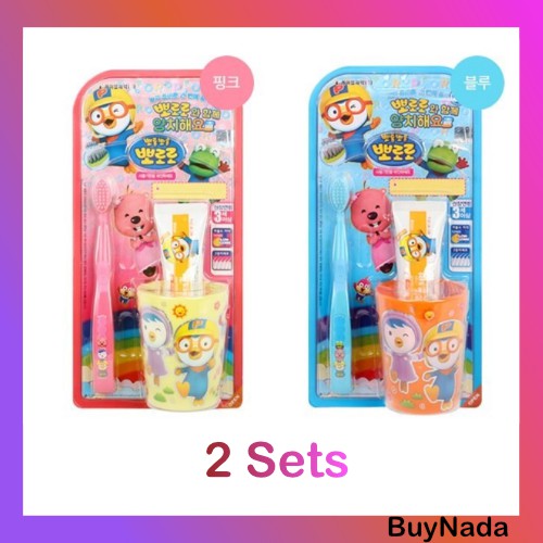 2 Sets Pororo Toothbrush, Toothpaste, and gargle cup
