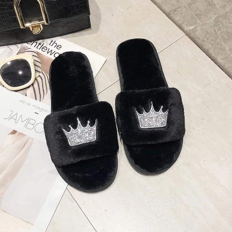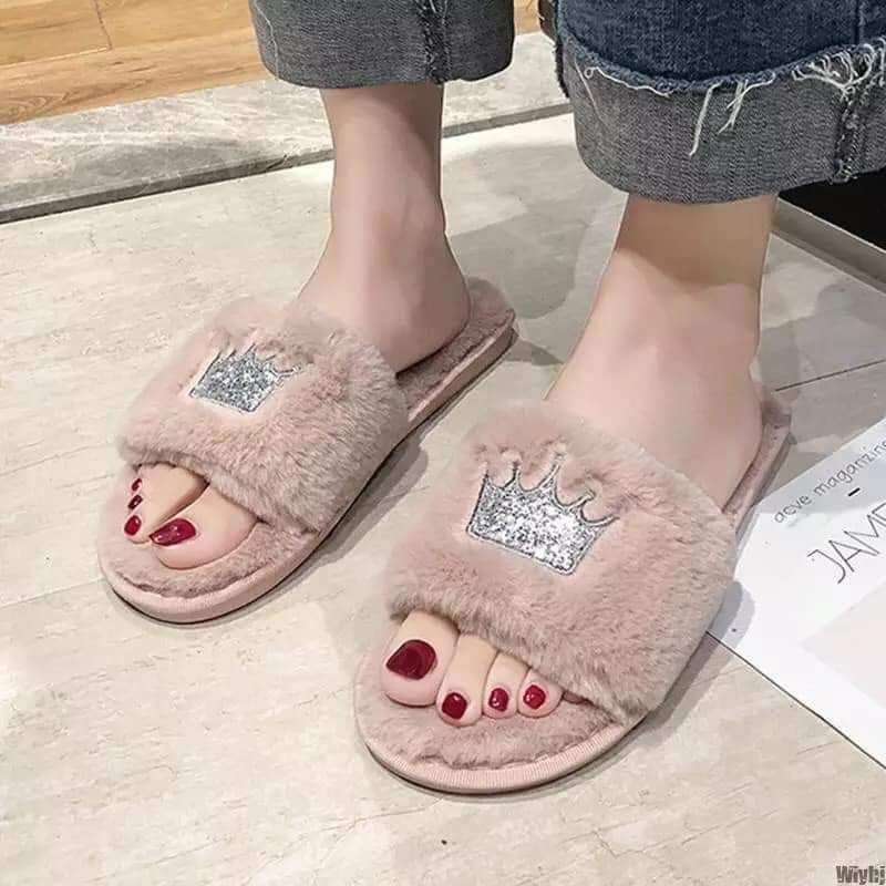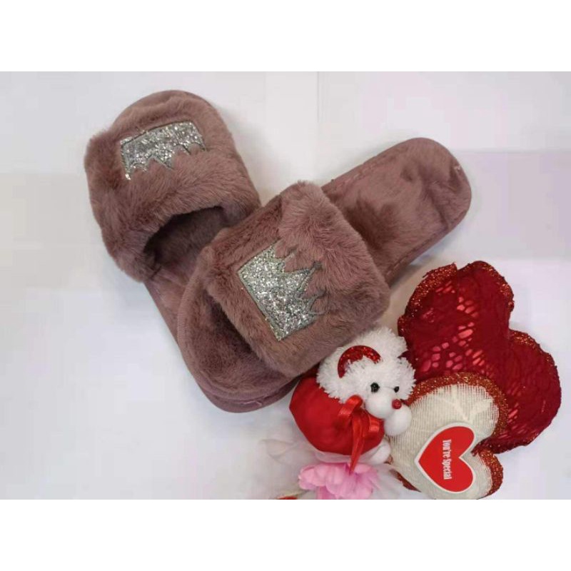 Crown&ribbon&heart Wool Slipper indoor Slipper Fur Slippers