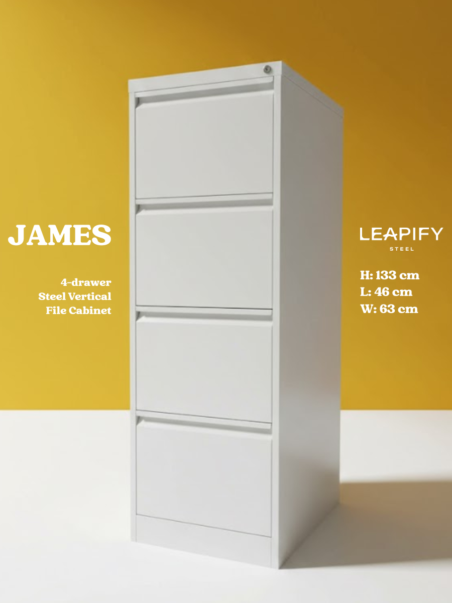 JAMES | Industrial 4-Drawer Steel Vertical File Cabinet by Leapify Steel- Waterproof & Termite-proof