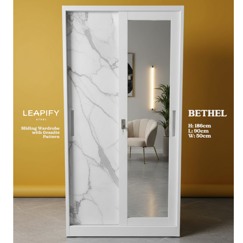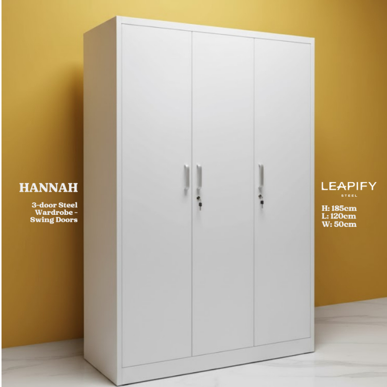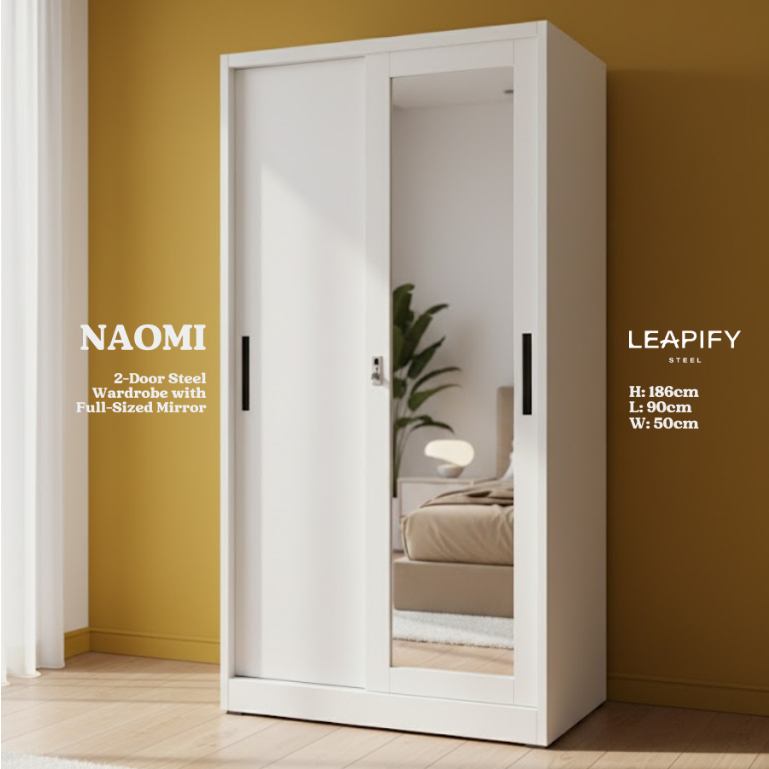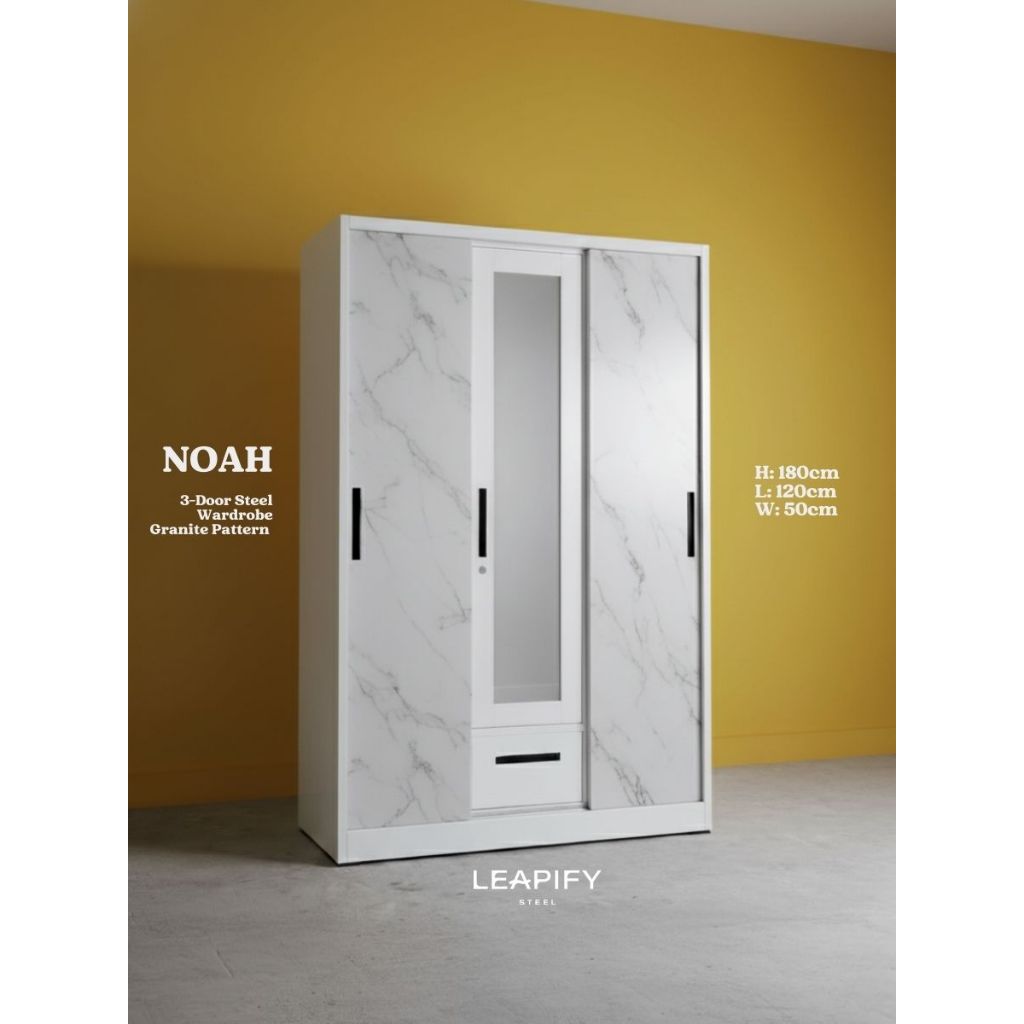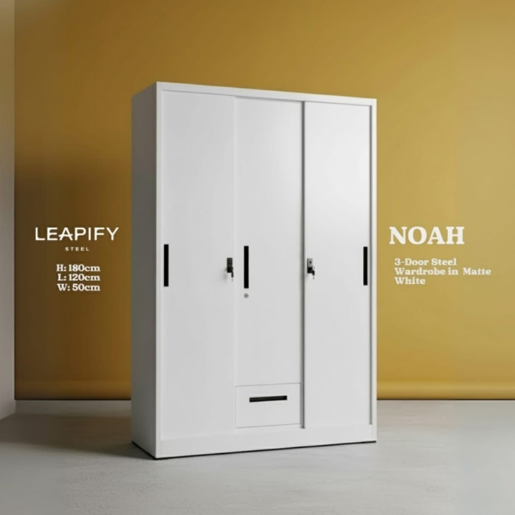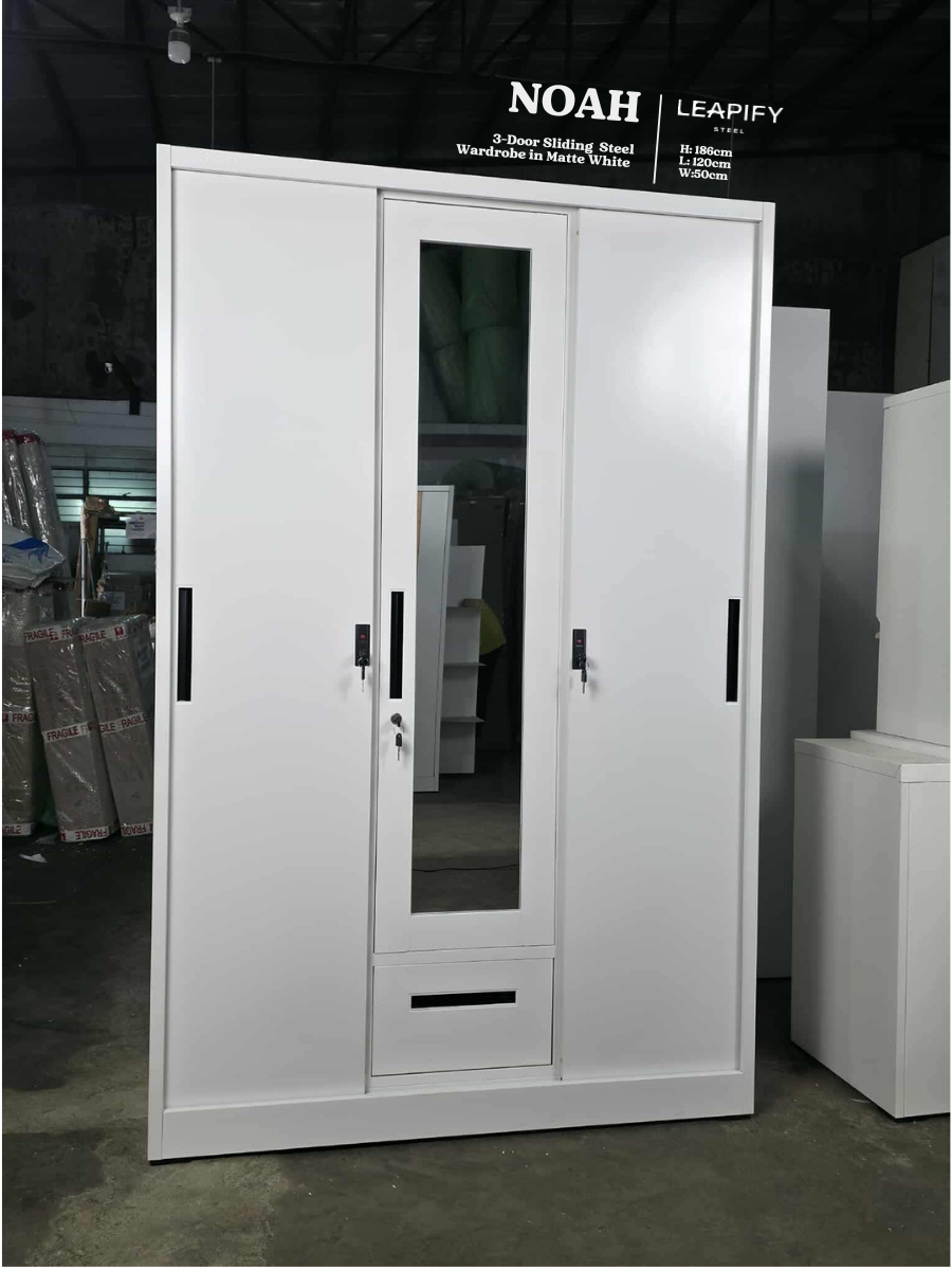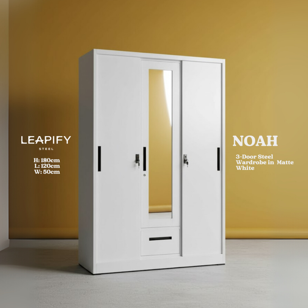 NOAH | Full Steel 3-DOOR Sliding Wardrobe with Mirror in Matte White by Leapify Steel
