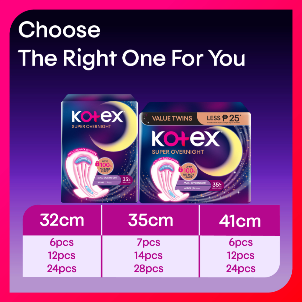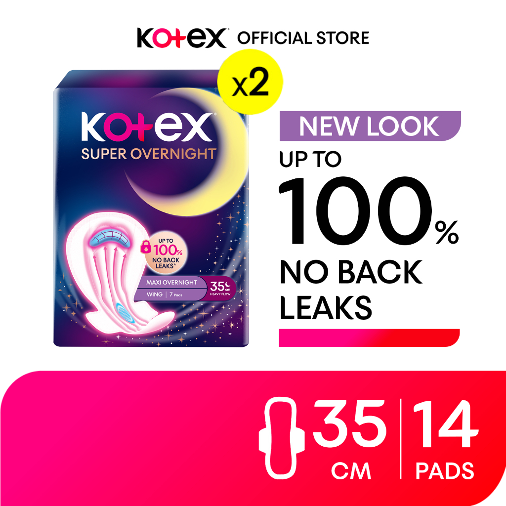 Kotex Super Overnights Feminine Pads 35cm - 7 Pads x 2 Packs (14 Pads)