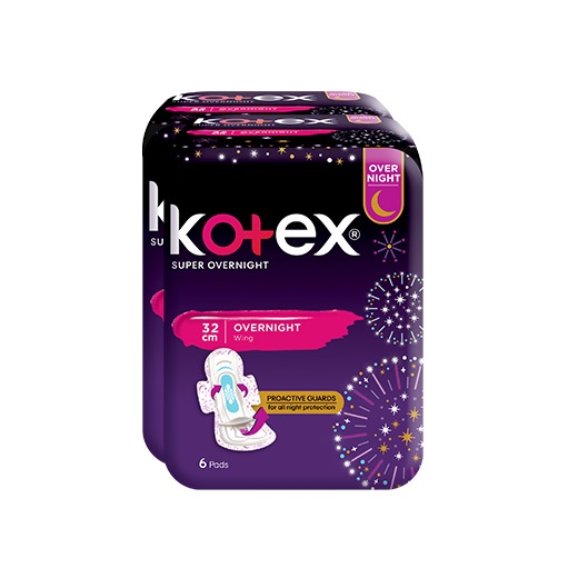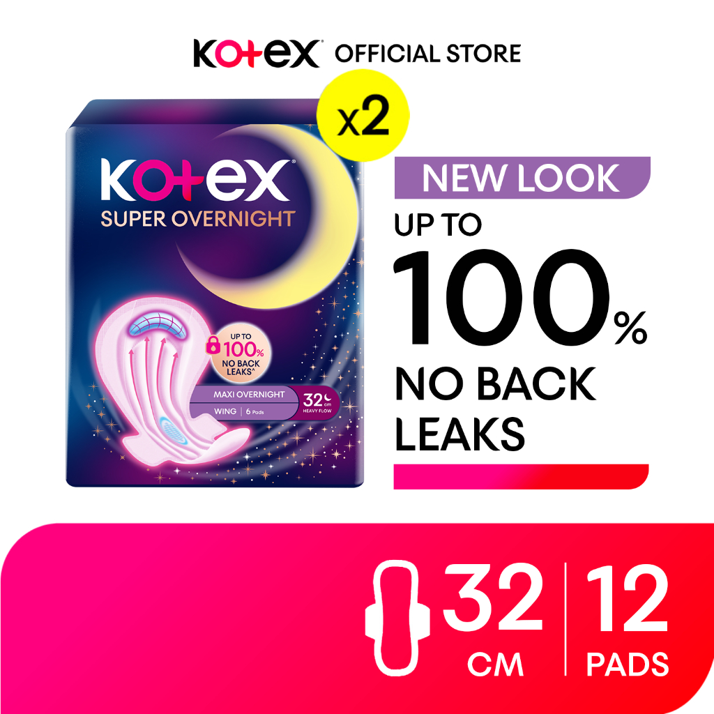 Kotex Super Overnights Feminine Pads 32cm - 6 Pads x 2 Packs (12 Pads)