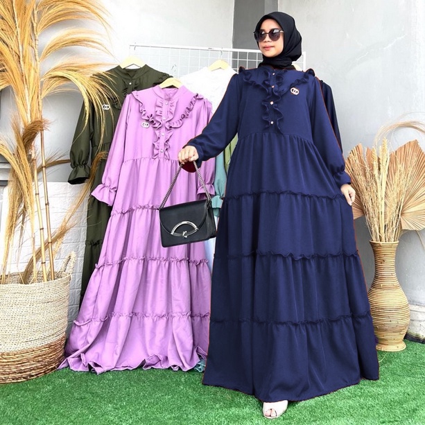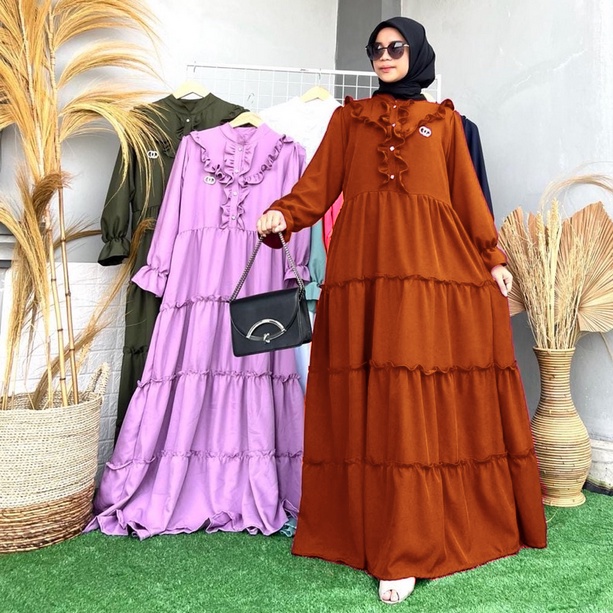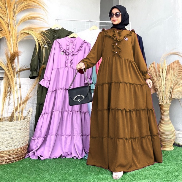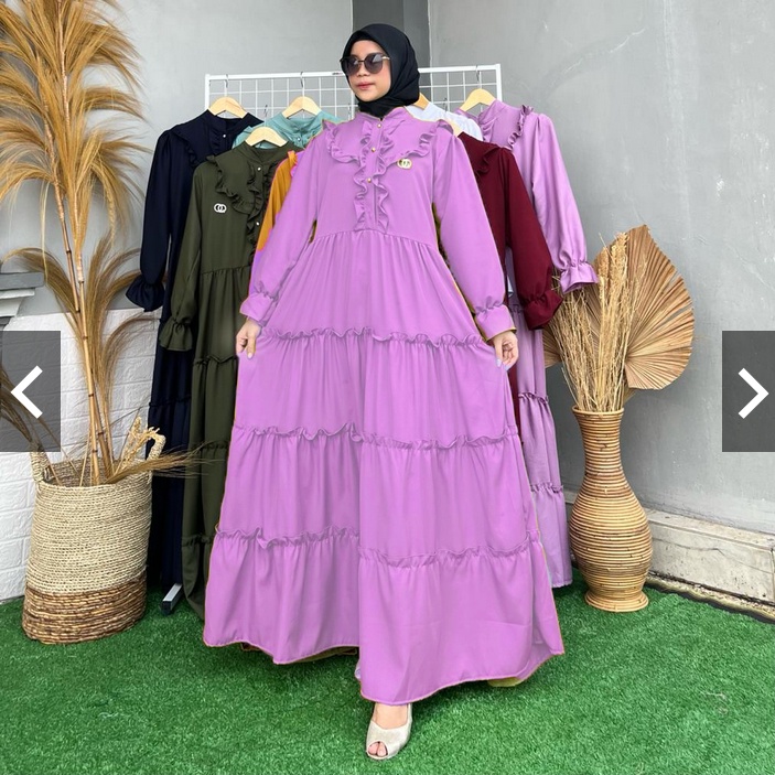 REFA MAXI DRESS SHAKILA PREMIUM 2 SIZES MUSLIM WOMEN'S GAMIS WITH Ruffled Layers REFA DRESS FREE BROSS SHAKILA Maxi Dress for Woman Long Dress for Women Casual Elegant