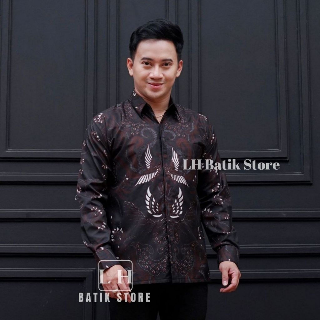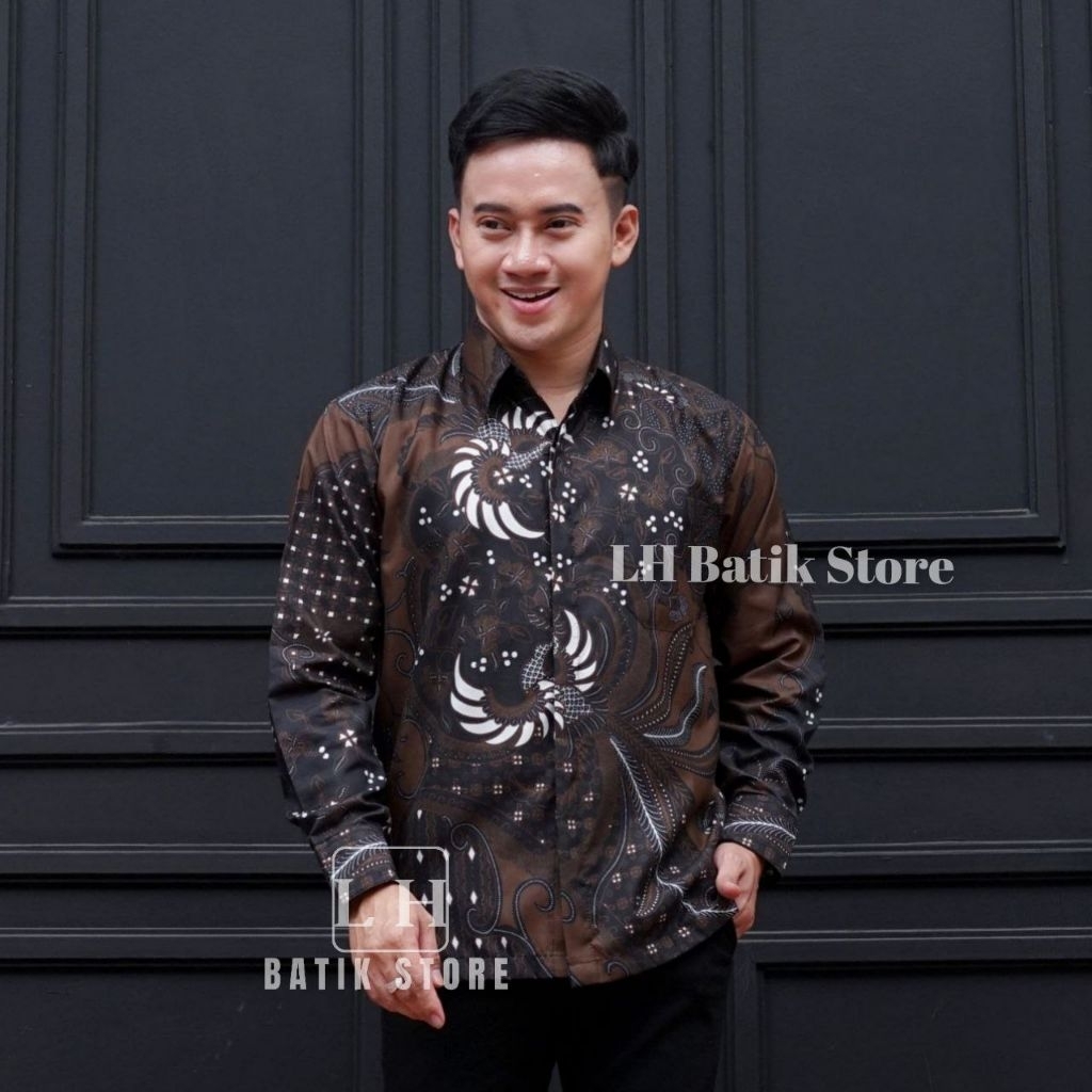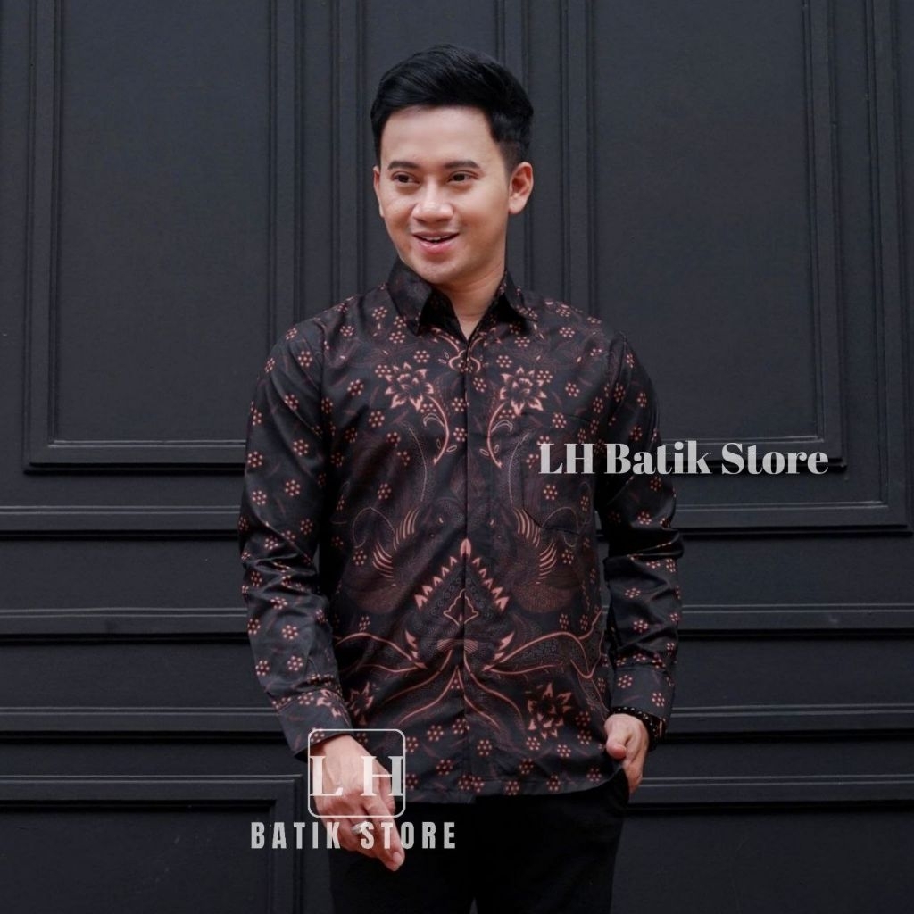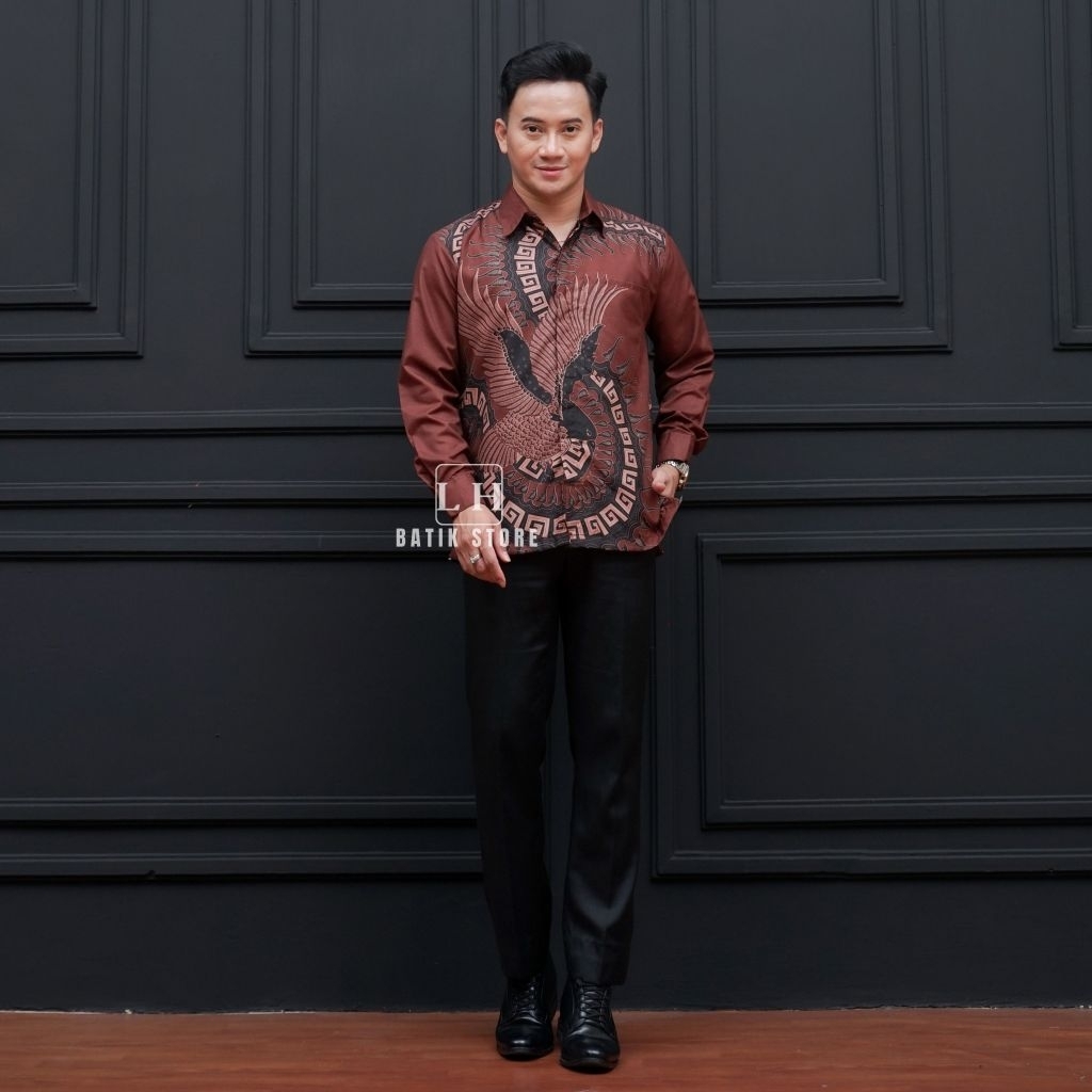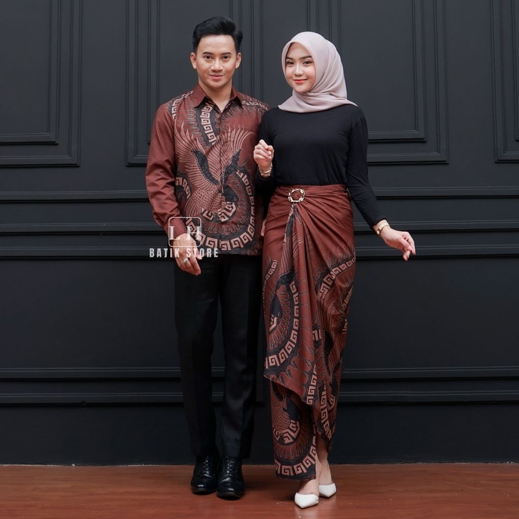 KEMEJA Couple batik wrap skirt, men's long-sleeved batik shirt, mahogany