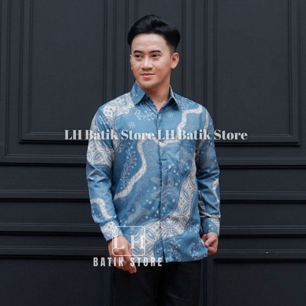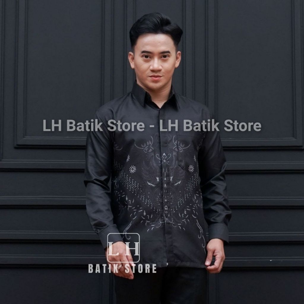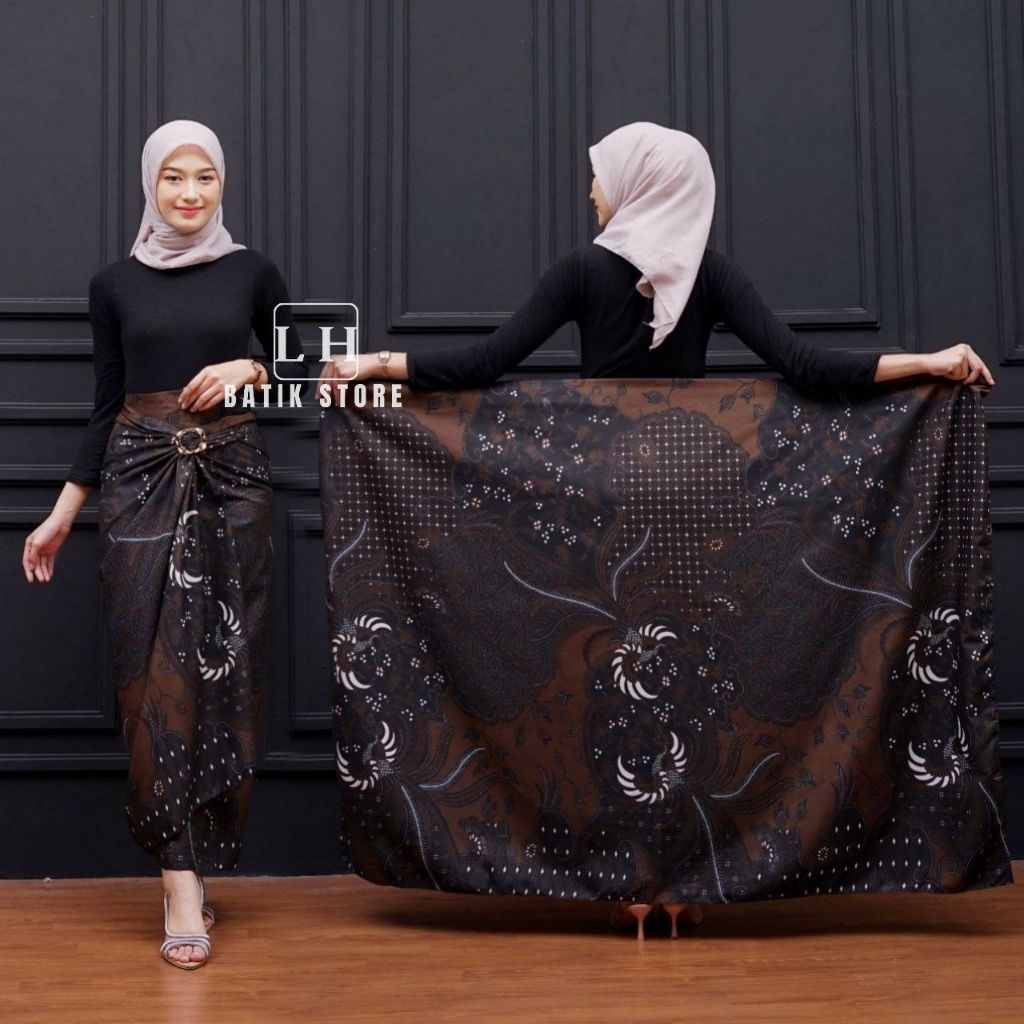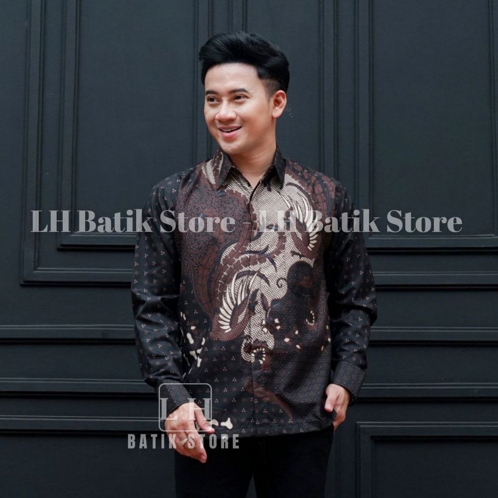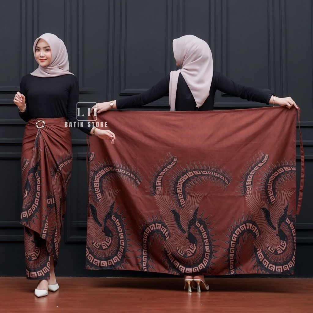 KEMEJA Couple batik wrap skirt, men's long-sleeved batik shirt, mahogany