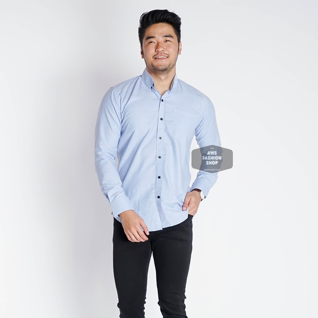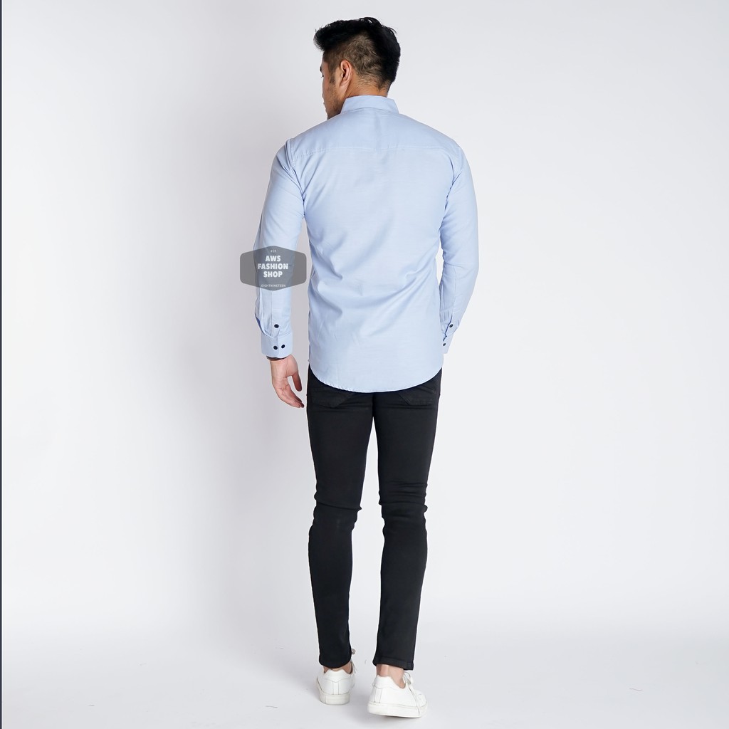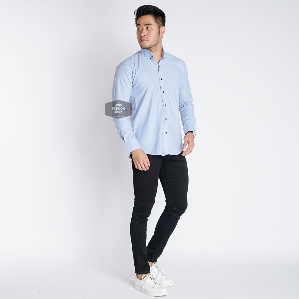 KEMEJA Men's Plain Oxford Long Sleeve Shirt Light Blue Soft Blue Casual Slimfit 3371