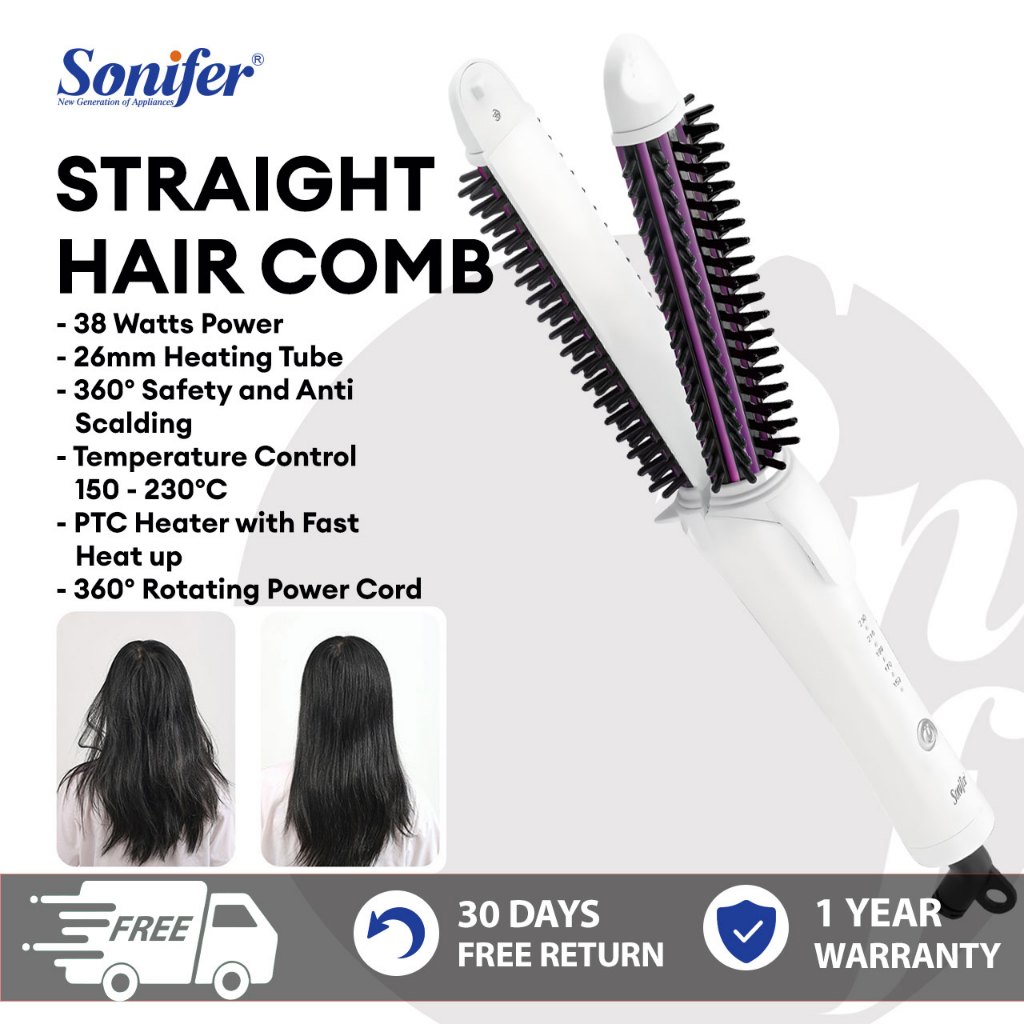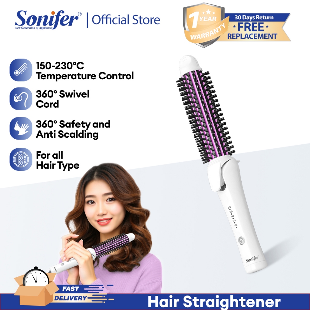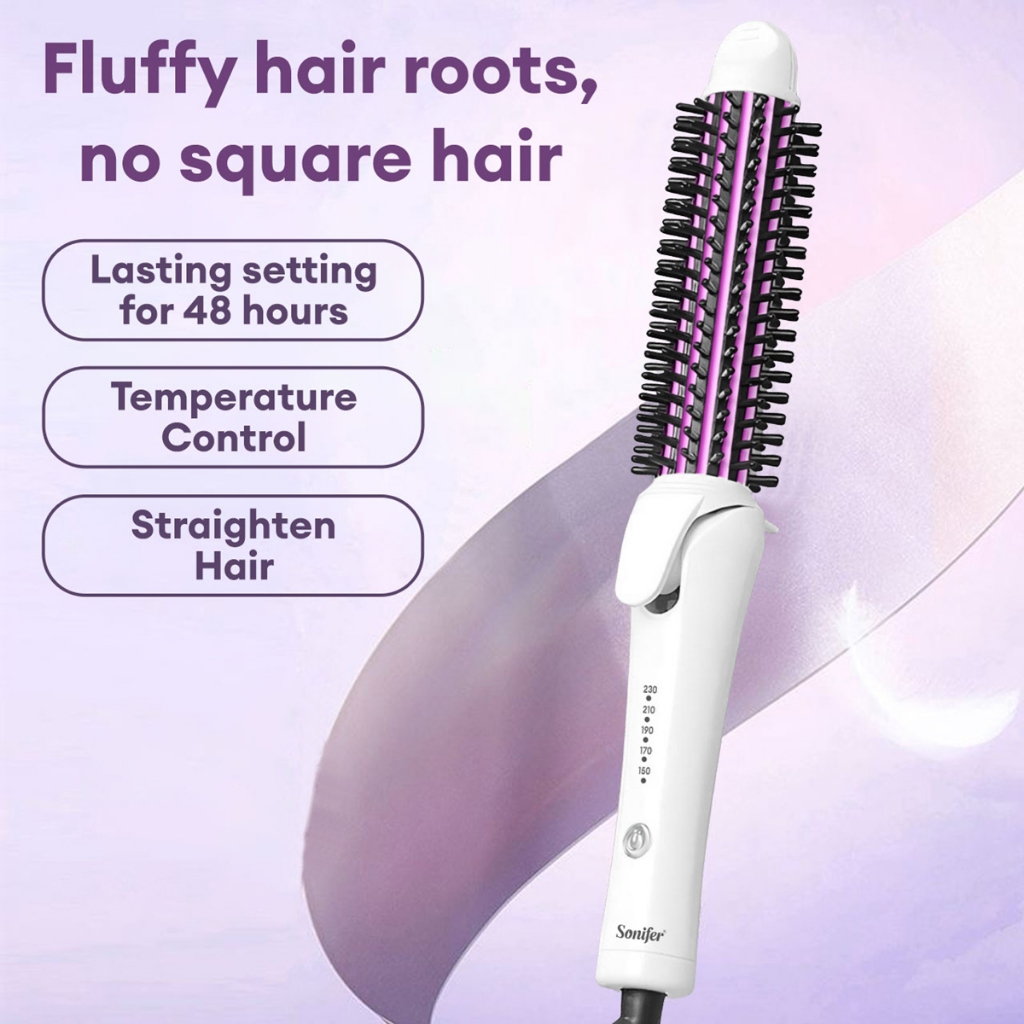 Sonifer Ionic Ceramic Styler Round Hairbrush Ceramic Heated Bristles Straighten Wavy Or Curly Hair