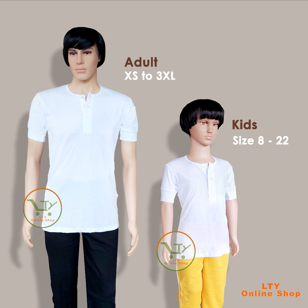3PCS CAMISA DE CHINO SHORT SLEEVES COTTON KIDS 2 ADULT WHITE BUTTONS JEWEL KAMISA 1PC shortsleeves