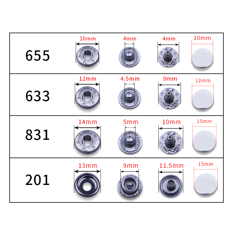 10 Sets Metal Copper Four Buckle Pack Press Studs Sewing Button Snap Fasteners For Sewing Leather Craft Clothes Bags