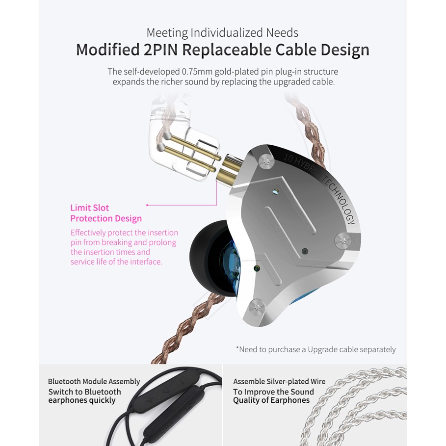 KZ ZS10 Pro 4BA+1DD Hybrid Earphone Speaker Gaming Headset HIFI Music Bass Earbuds In-Ear Monitor Headphones DJ Studio Earbuds With case for KZ AS10 ZSX ASF ASX ZS10 ZSN PRO