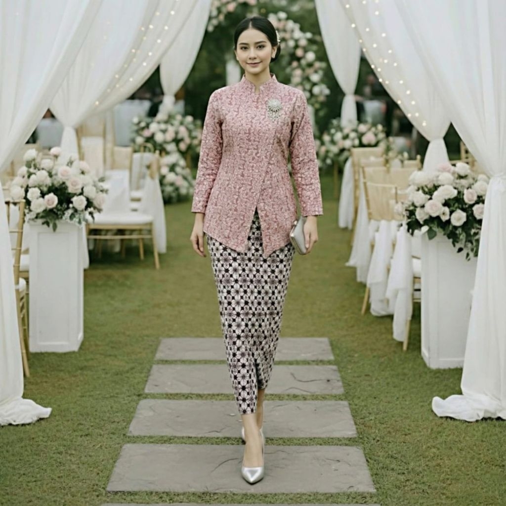 Fukuro Premium Jaguar Kebaya Top with Front Buttons, Graduation Kebaya, Engagement, Proposal, Latest Model 2025