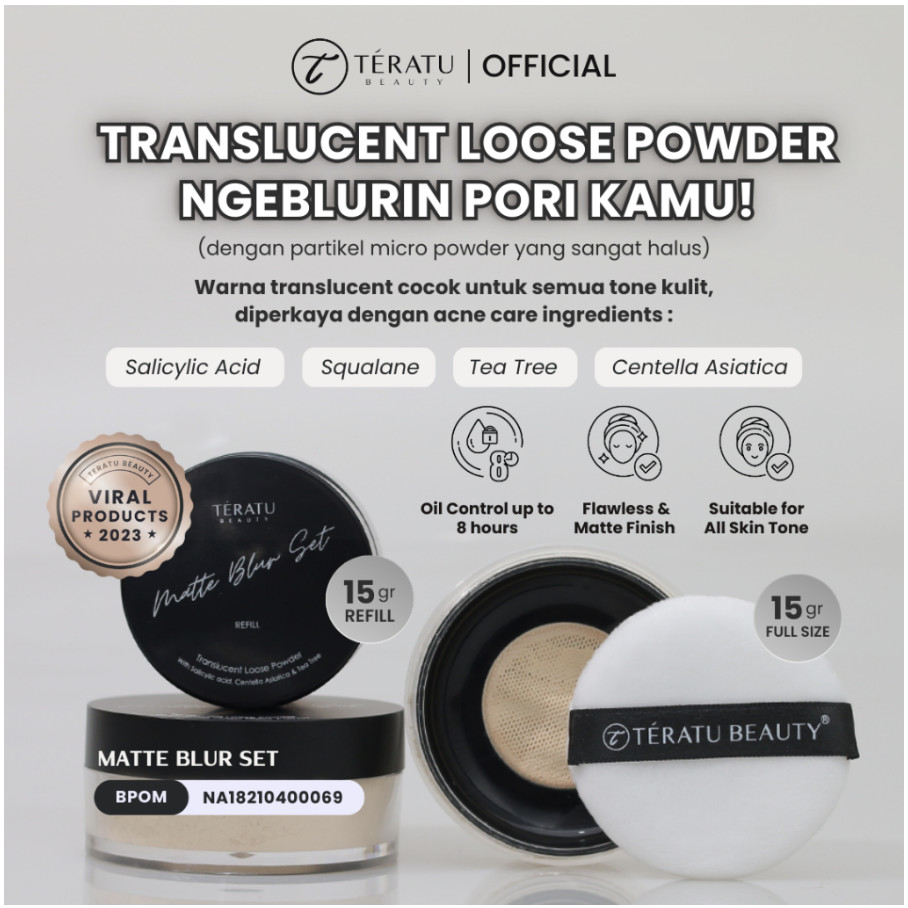 Teratu BEAUTY Matte Blur Set Translucent Loose Powder - 15gr | With Salicylic Acid, Centella Asiatica, Tea tree