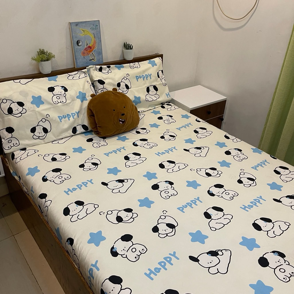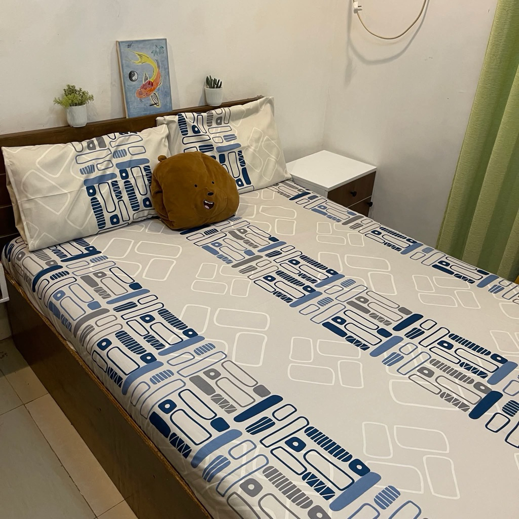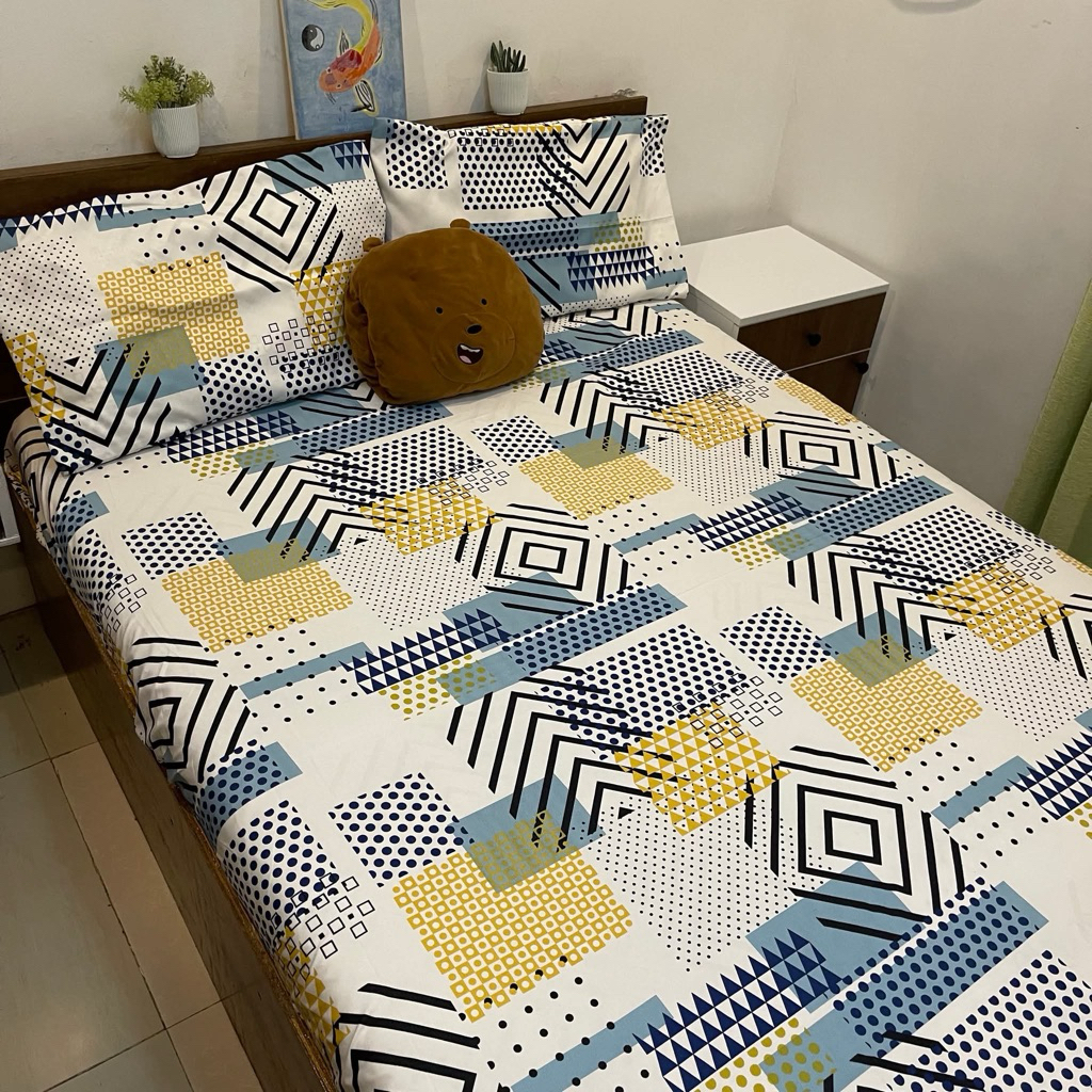 LeCo B1: Double 3in1 Makapal Bedsheet & 2 Pillowcase Full Garter Canadian Cotton 48x75