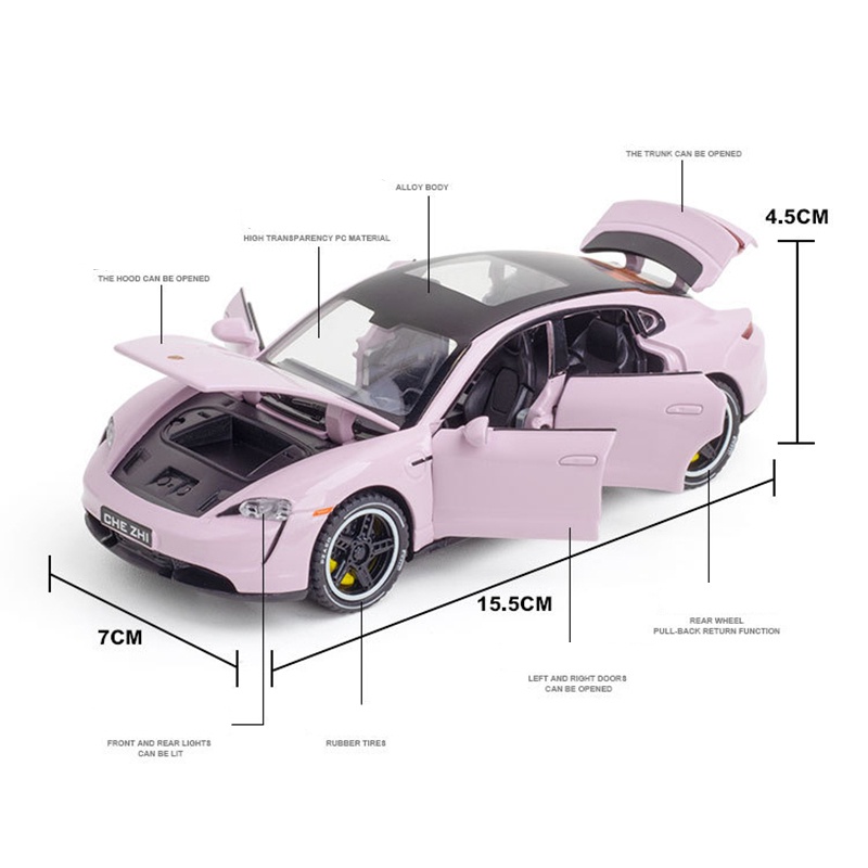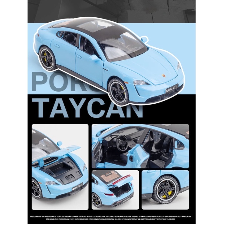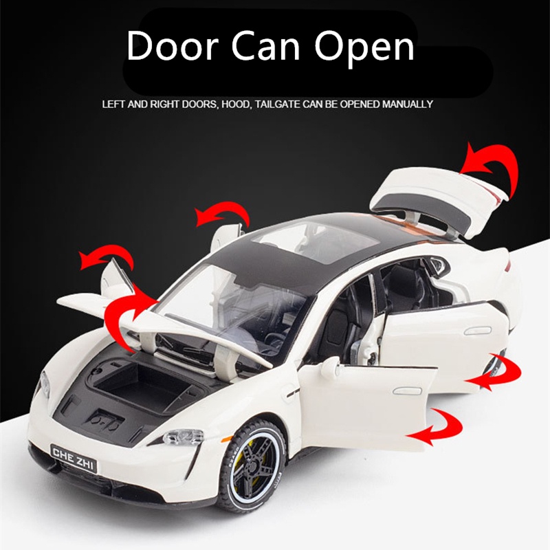 1:32 Porsche Taycan Car Models Alloy Diecast Toy Vehicle Doors Openable Auto Truck With Sound and Light
