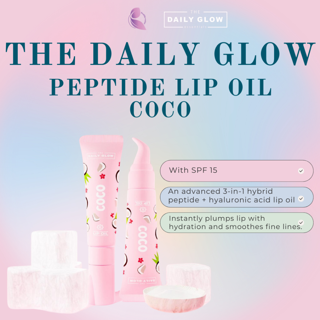 THE DAILY GLOW Peptide Lip Oil with SPF 15 | Hydrating & Nourishing Formula | Protects Lips from UV