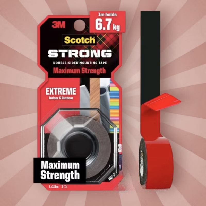 3M Scotch Extreme Strong Double Sided Mounting Tape, Outdoor Multi-purpose Adhesive, 1 Roll/pack, 19mm X 1.5 M