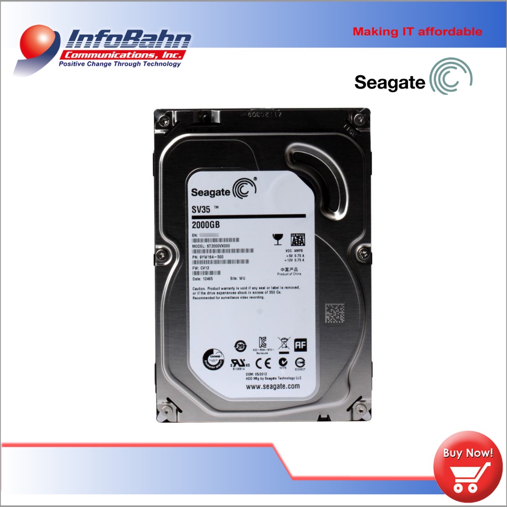 Seagate St2000vx000 Sv35 Series 2tb 7200rpm Sata 6gbps 64mb Cache 3.5-Inch Internal Hard Drive