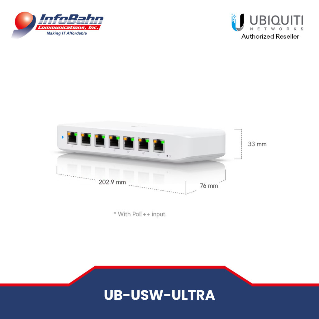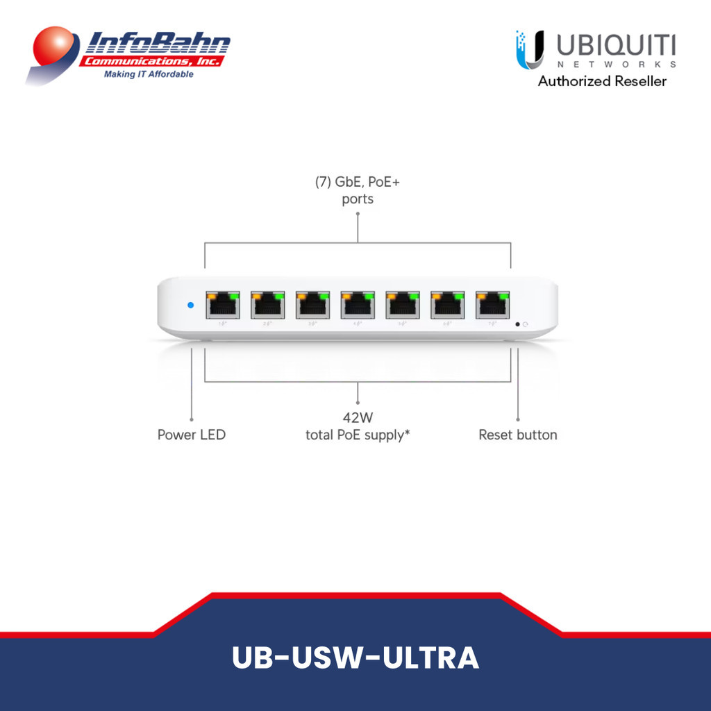 Ubiquiti USW-ULTRA | 42W Layer 2, 8-port GbE PoE Switch with Versatile Mounting Options | Infobahn