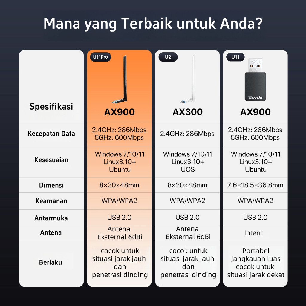 Tenda U2 AX300 U11 PRO AX900 Usb Wireless High Gain WiFi 6 Wireless USB Adapter N
