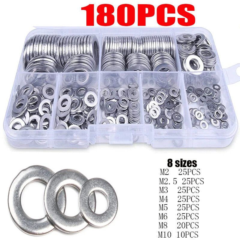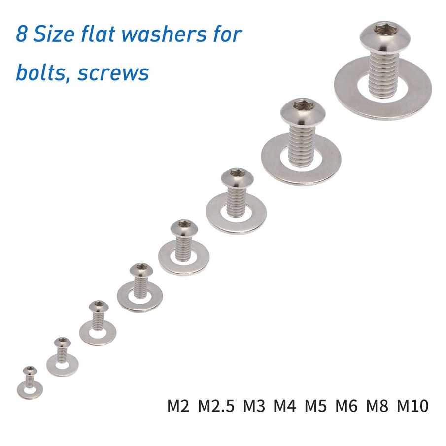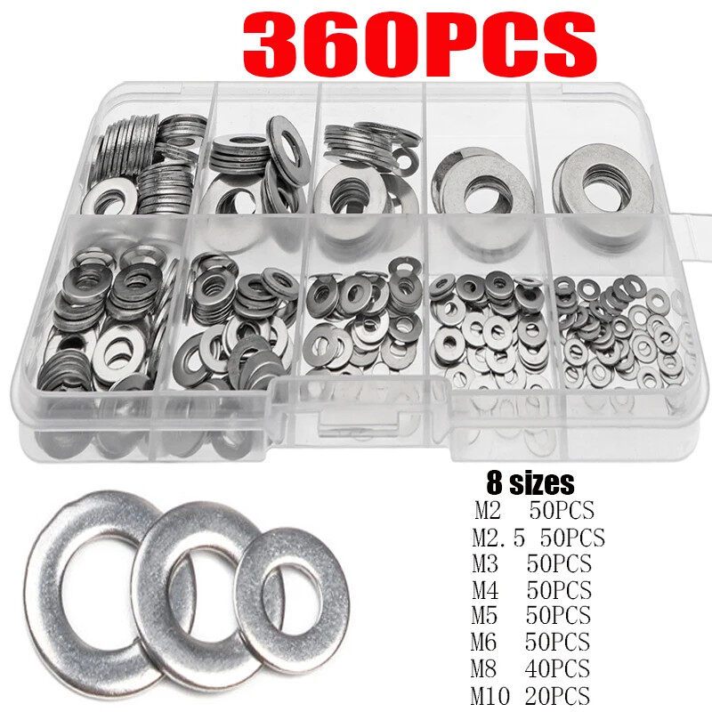 360PCS Flat Washers 304 Stainless Steel M3 M4 M5 M6 M8 M10 Flat Washer Plain Gasket Spacers Kit
