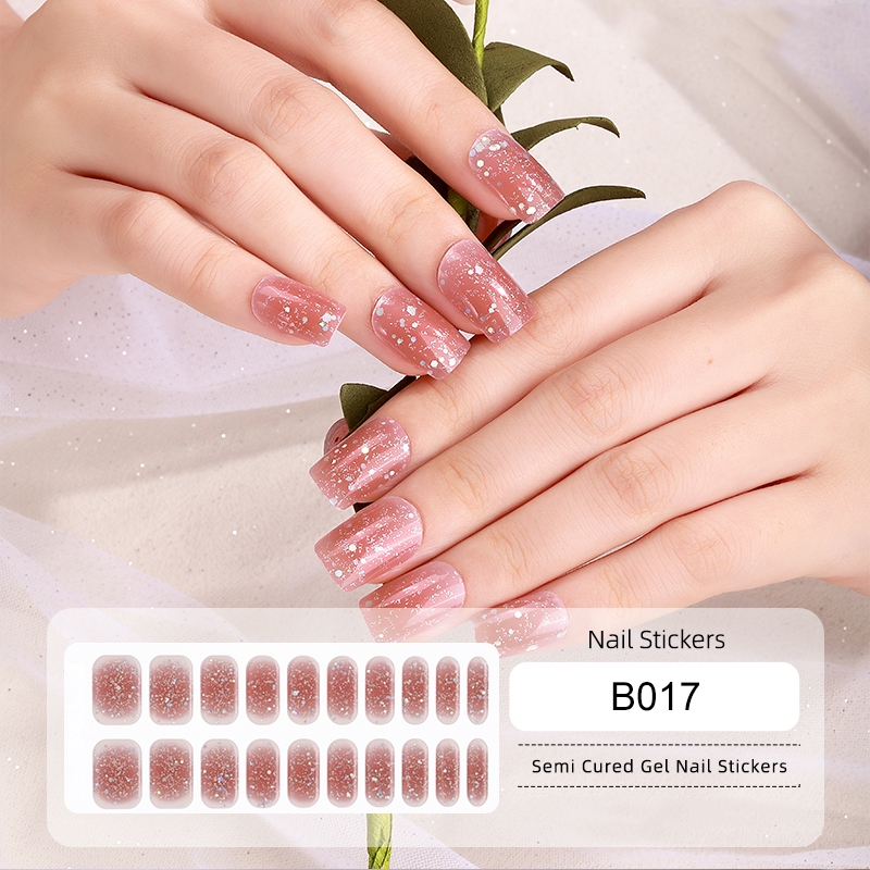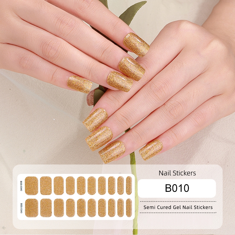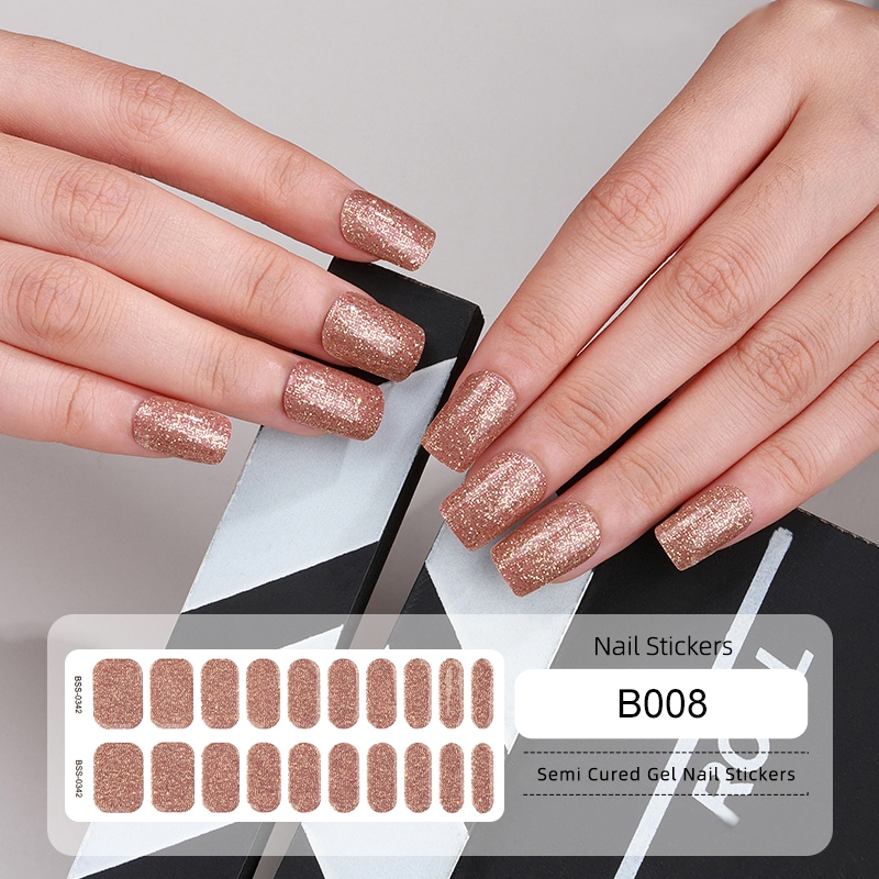 UR SUGAR 22Tips Semi Cured Gel Nail Strips Rose Gold Long Lasting Manicure UV LED Lamp Need Fashion Full Cover Nail Gel Sticker Decals