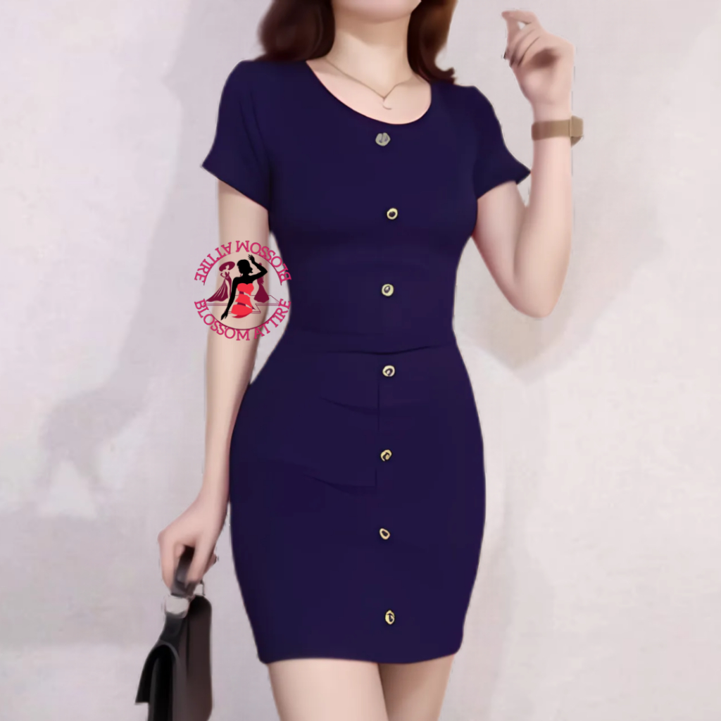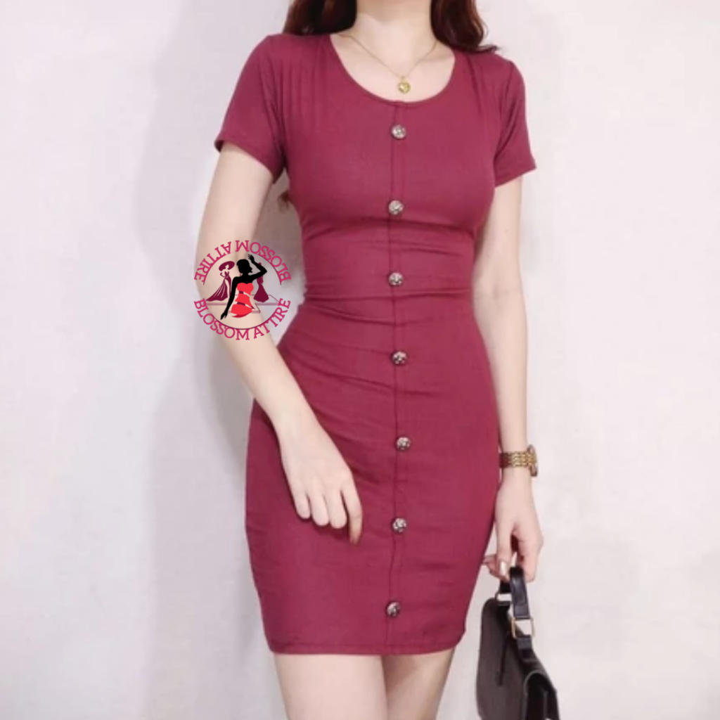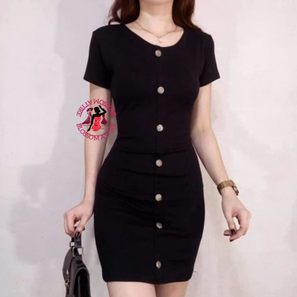 Blossom Camilla Button Mini Sexy Plain Bodycon Fit Dress