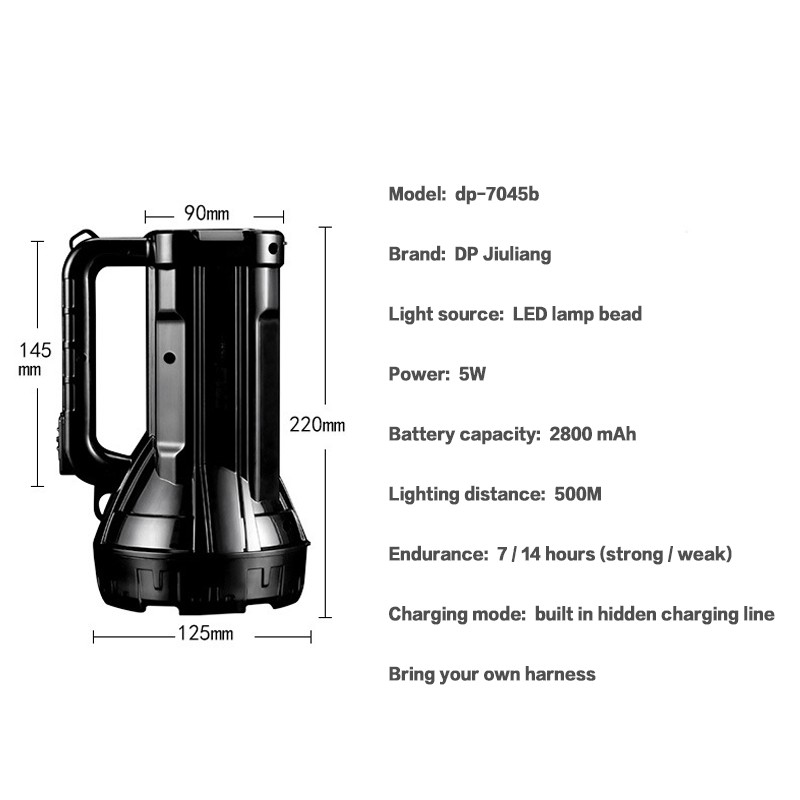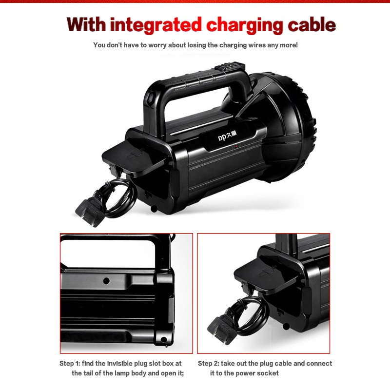 DP Rechargeable Searchlight Glare Flashlight Emergency Light High Power Waterproof Built-in Charger