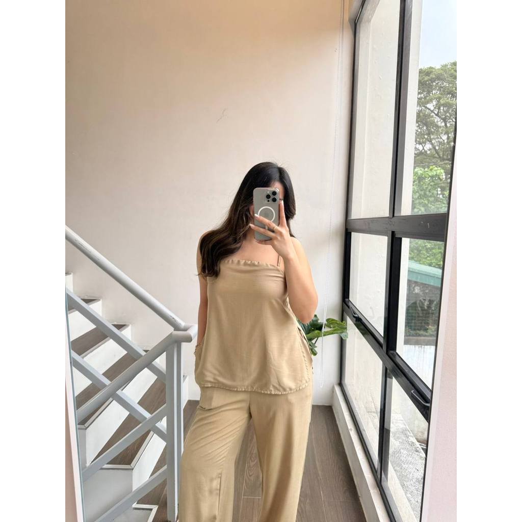 Luciousgrapes Co-ord Set Double lining Top with Pants Adjustable Strap Soft Linen Fabric Comfy Wear