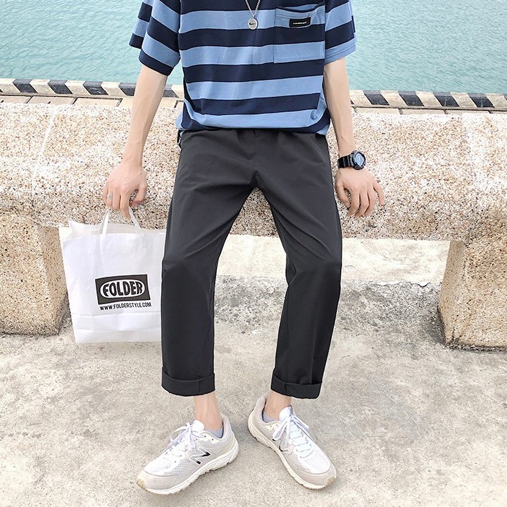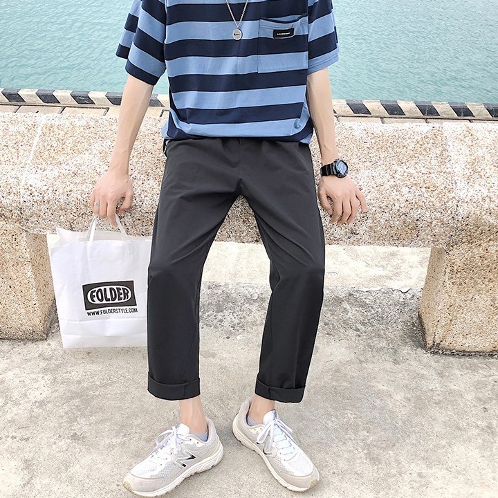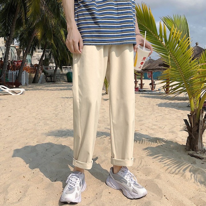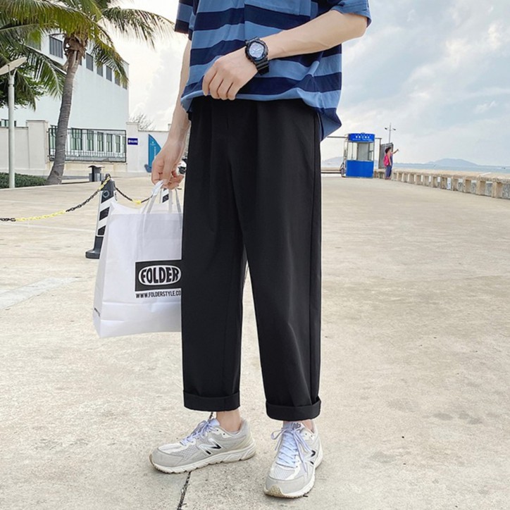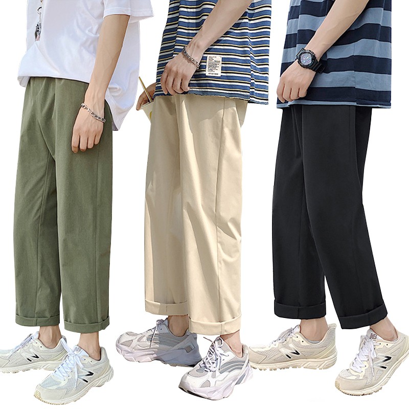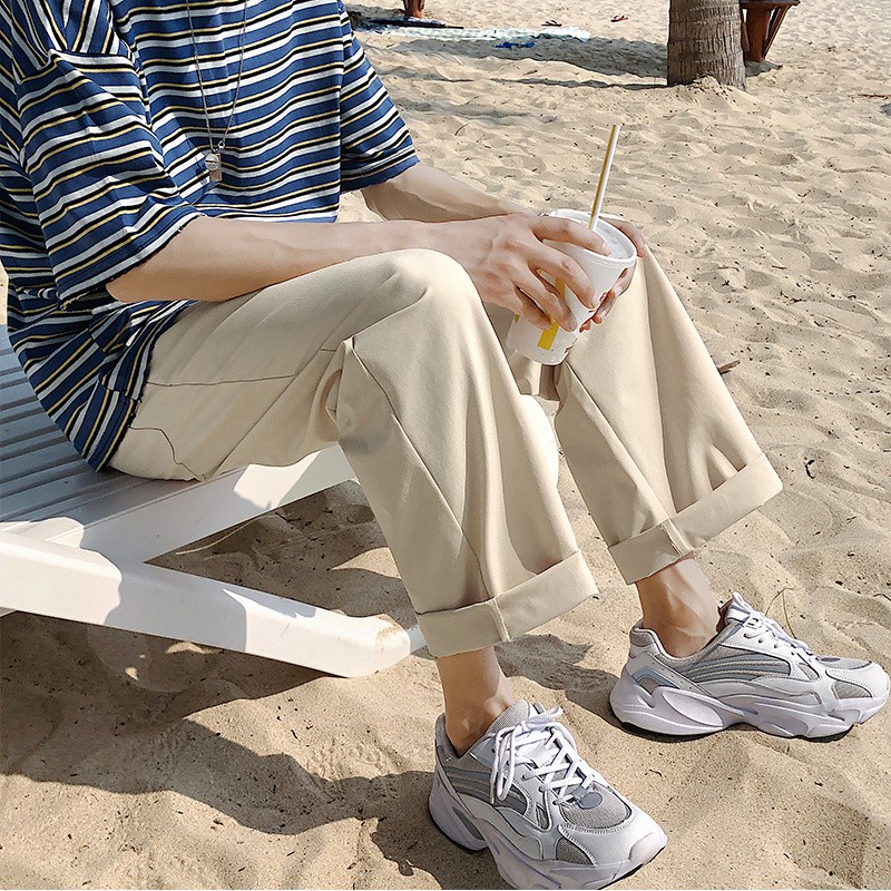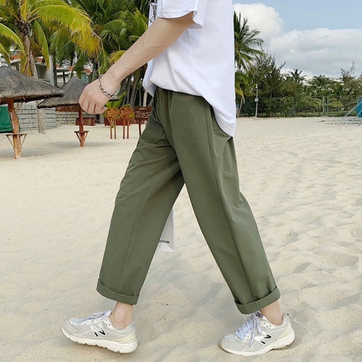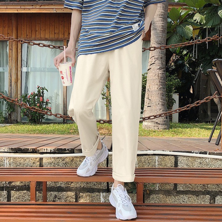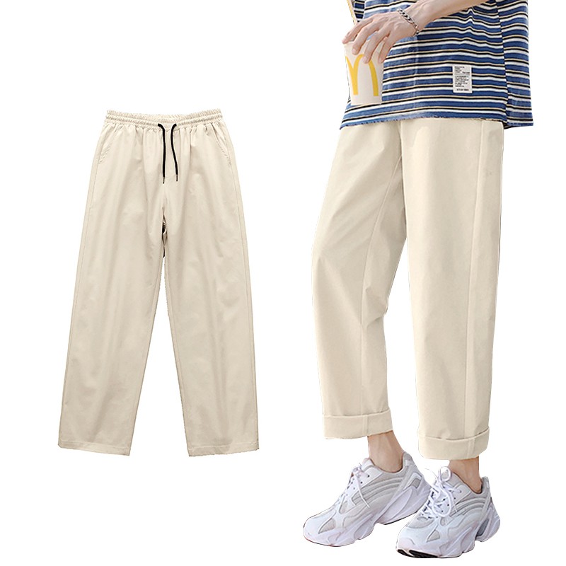 【Ready Stock 】S-5XL Pants men's summer trend plain color oversized casual loose solid color straight trousers naked elastic waist pants for men